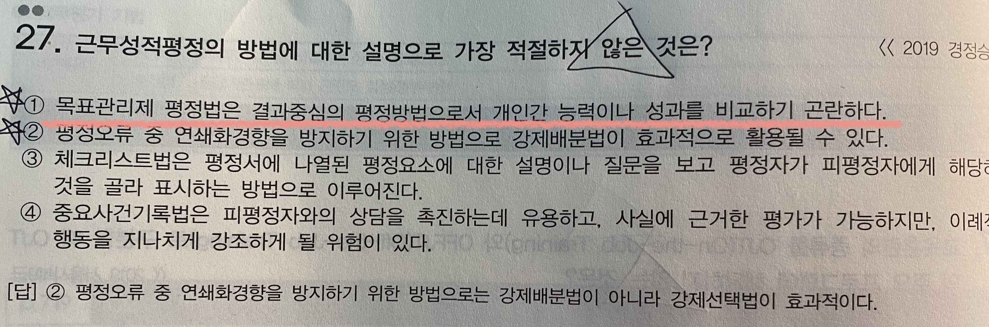 사진에 1번 선지 왜 틀렸나요? 결과 중심인데 왜 능력•성과 비교가 곤란한지... 답변 항상 감사드립니다