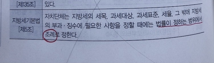 선택지 4번 조례에 의한 세목의 설치는 허용하지 않는다(ㅇ) 지방세기본법에 나와있듯이 지방세의 세목, 세율~ 필요한 사항을 정할 때에는 법률이 정하는 범위에서 조례로 정한다. 조례로 정할수 있는거 아닌가요?