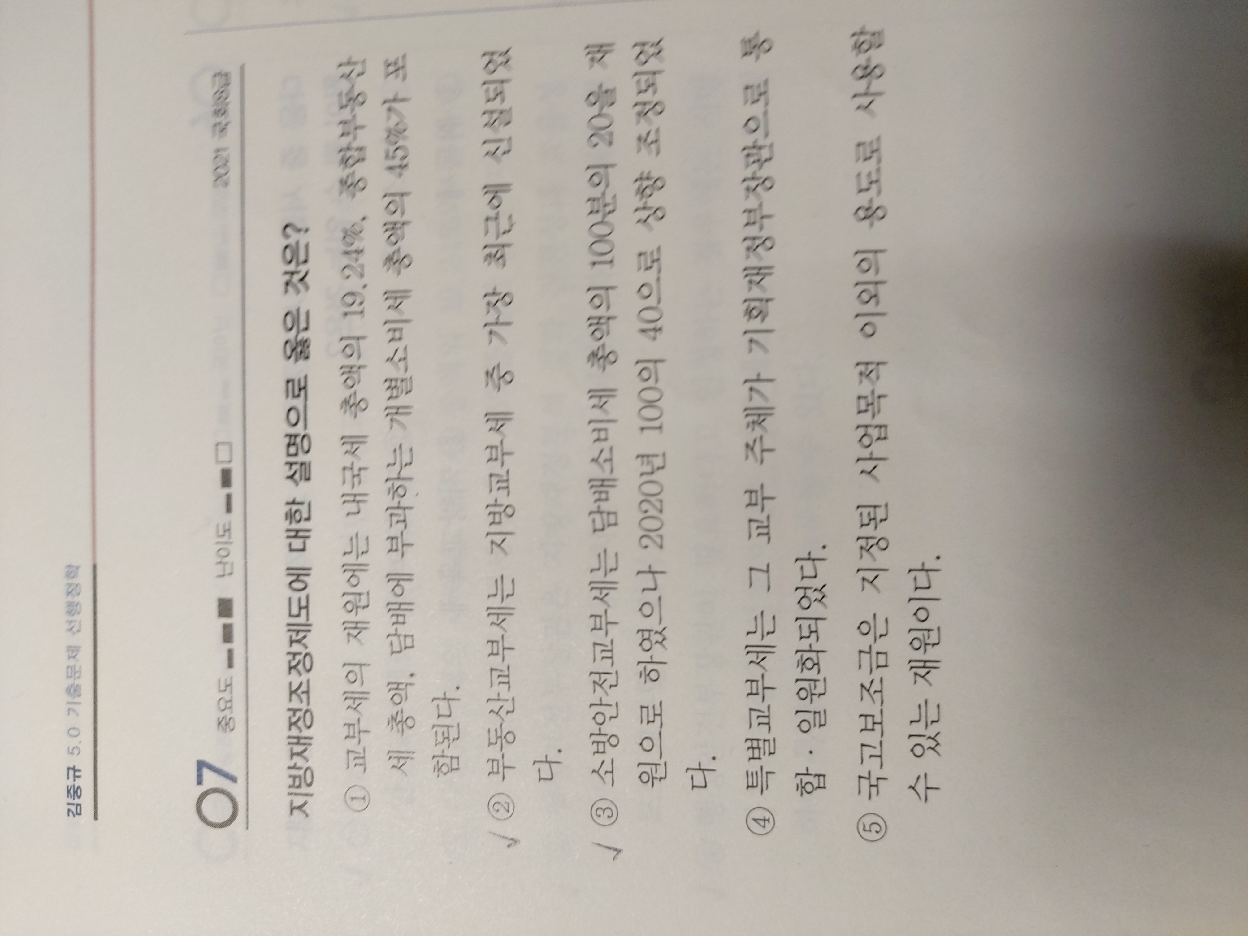 7번에 3번지문의 포인트가 40이 아니라 45로 상향조정했다는건 알겠는데요,  담배소비세 가 아니라 담배개별소비세 라고 해야하지 않나요?? 담배소비세와 담배개별소비세는 다른게 맞죠 ..?!