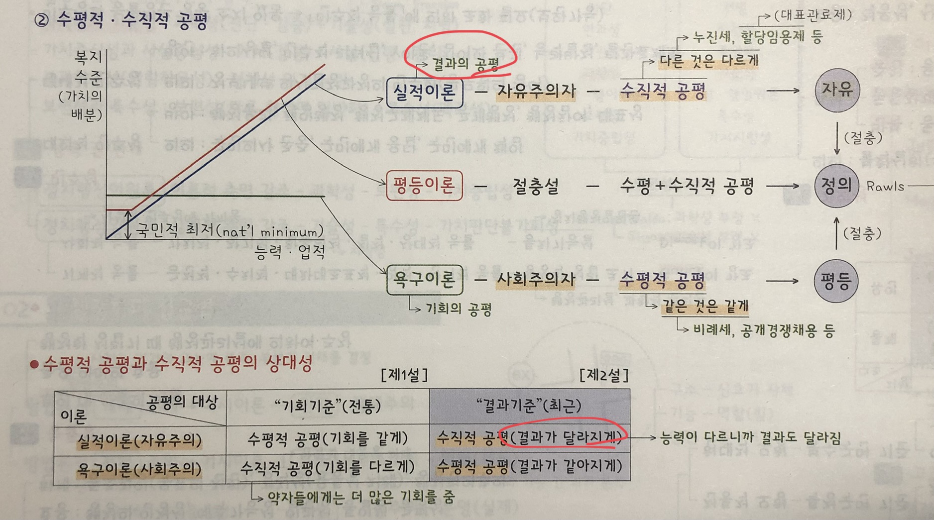 자유주의의 경우 기회를 같게 (결과를 다르게, 능력주의) 이기에 수평적 공평인 것이고,