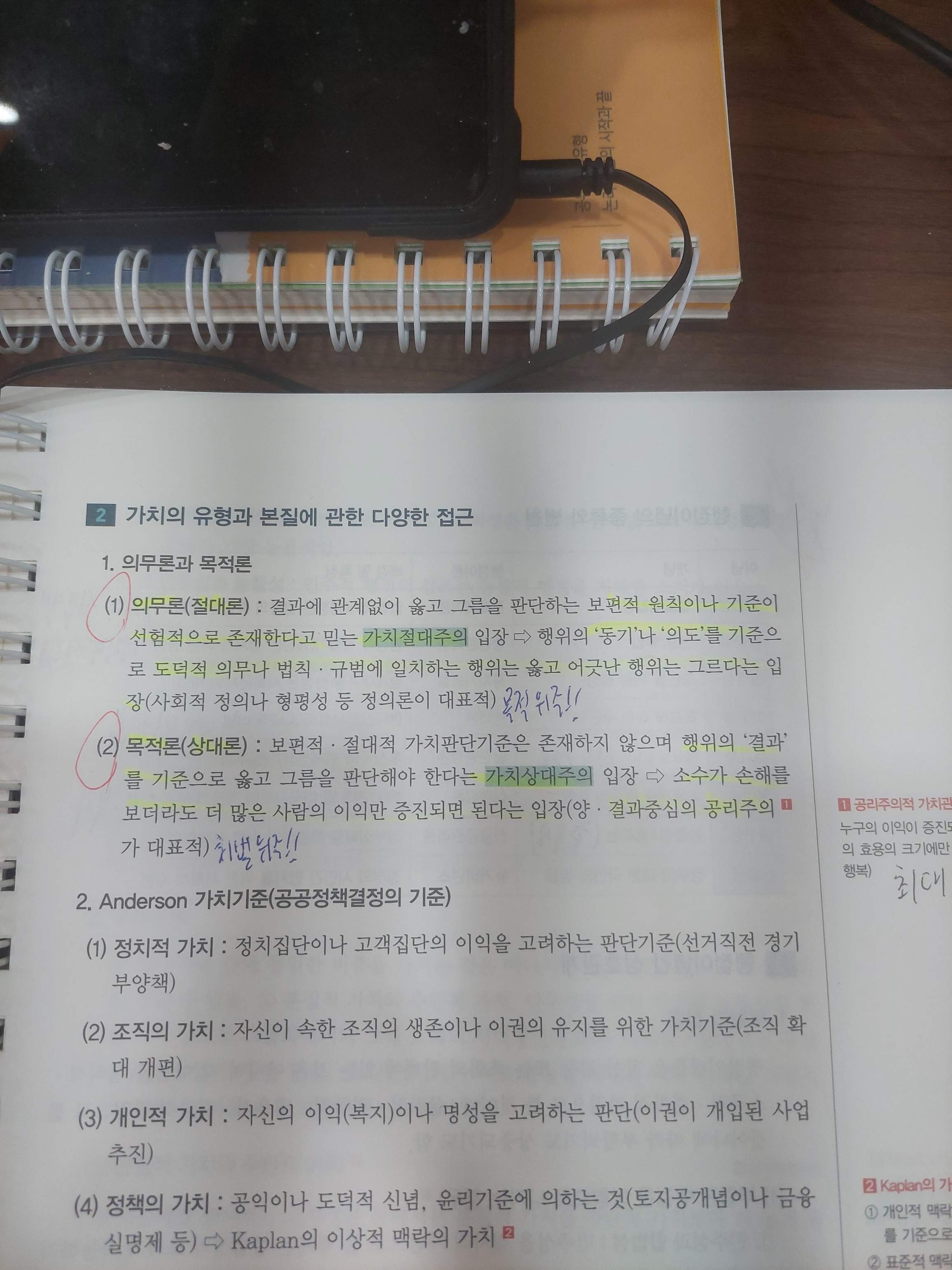 안녕하세요. 카스파 합격생조교25입니다. 네. 맞습니다. 의무론은 목적을 중시하여 결과가 안좋더라도 동기나 의도가 좋으면 문제를 삼지 않는 절대주의입니다. 따라서 사후처벌보다는 근원적인 문제해결을 더 중시합니다. 반면 목적론은 결과만 좋으면 된다는 상대주의입니다. 따라서 결과가 안좋으면 처벌합니다. (혹시 상담 및 문의 게시판의 질문과 중복되는 질문을 다시 올리신 특별한 이유가 있으실까요?) 감사합니다.