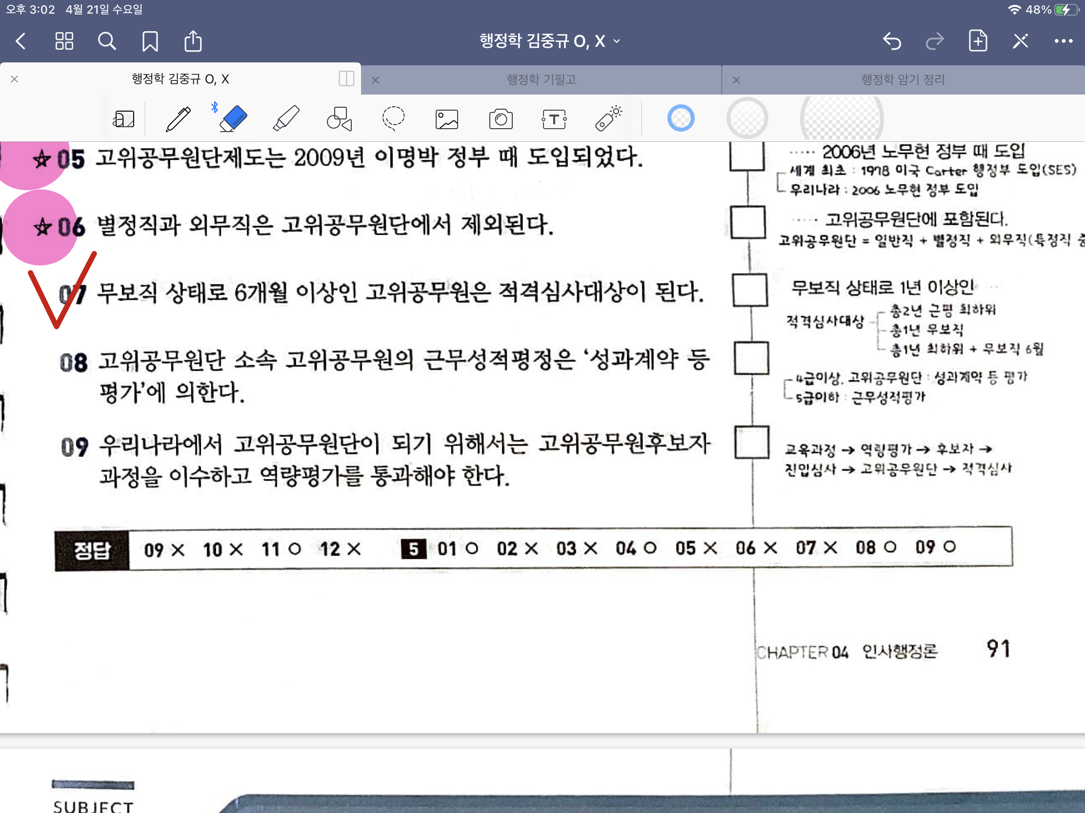 '고위공무원 후보자 과정을 이수하고 역량평가를 한다'라는 9번 선지가 맞는 걸로 돼 있는데