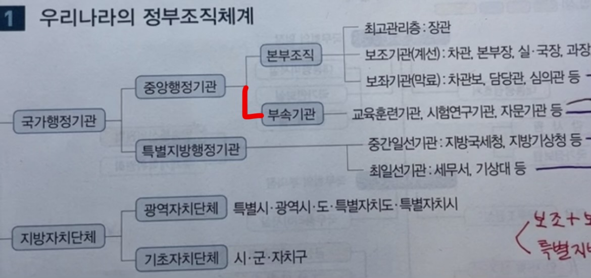안냥하세요 교수님! 정부조직법 특강 30번 문제에서 중앙행정기관에는 부속기관이 포함되지 않는다고 하셨는데 여다나에는 부속기관이 포함되어있어서요 교수님께서 다른 학생이 한 질문에 하신 답변을 보니 여다나 정부조직체계 표 부분을 수정해야한다고 하셨는데 정오표를 찾아도 없네요ㅠㅠ 제가 첨부한 사진과 같이 저 빨간색 선 부분을 없애고 중앙행정기관에 본부조직만 냅두면 되는건가용? 항상 감사합니다!
