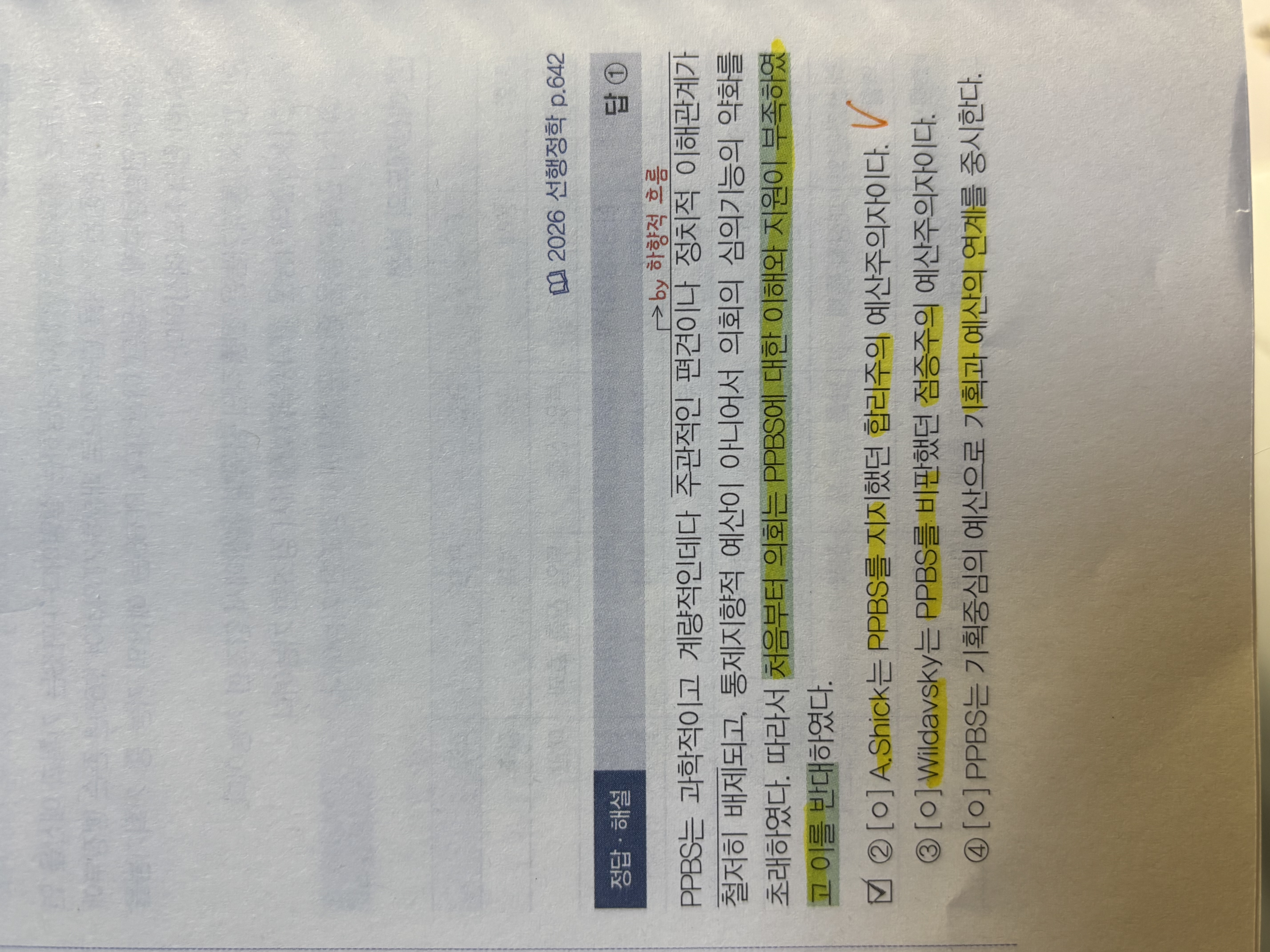 기출 654p 4번-2번 선지 해설에서 A.Shick는 ppbs를 지지했던 합리주의 예산주의자다. 라고 되어있는데