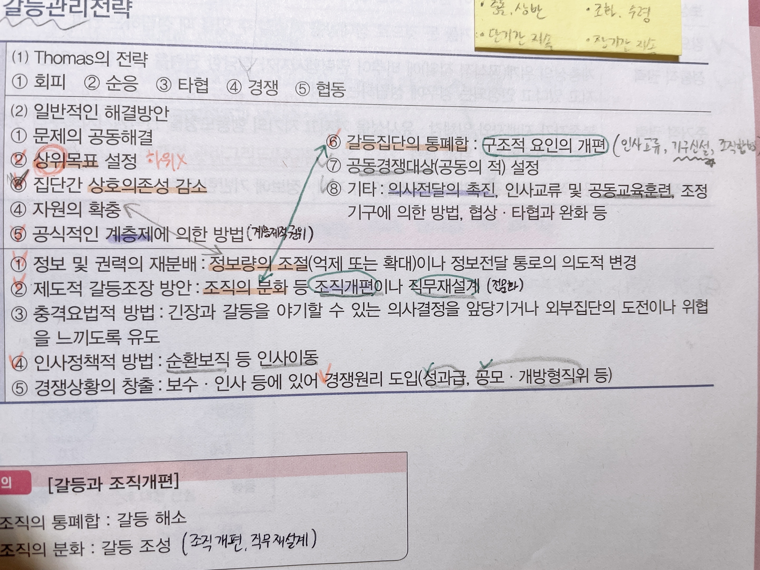 갈등해소 전략에 있는 갈등집딘의 통폐합: 구조적 요인의 개편 갈등 조성전략인 조직의 분화(조직개편. 직무재설계) 이렇게 나와있는데 구조적 요인의 개편과 조직개편의 차이가 뭔가요? 구조적 요인의 개편에 인사교류. 기구신설, 조직 합병이 포함되는 건가요?