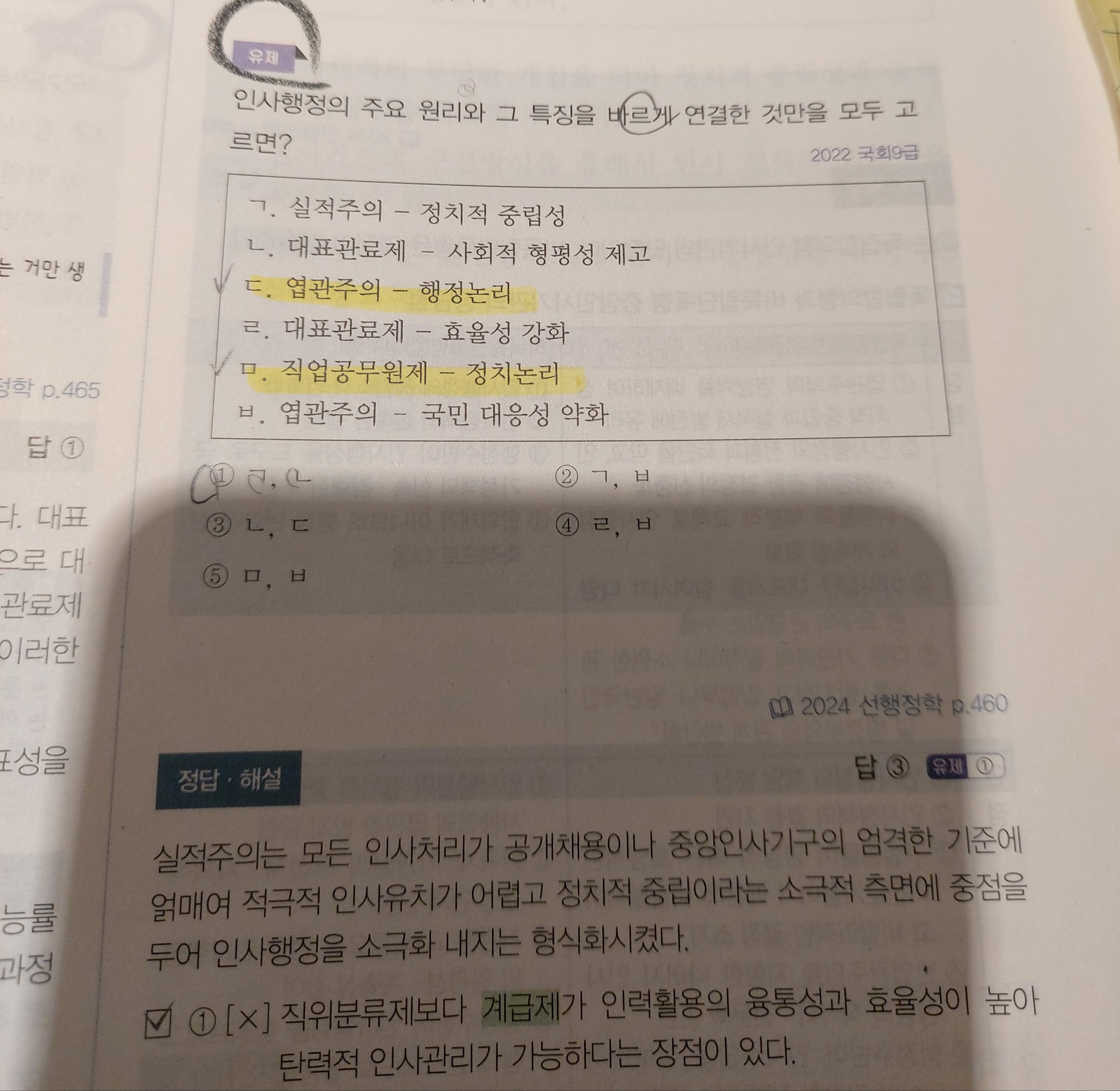 엽관주의가 정치논리, 직업공무원제가 행정논리입니다.