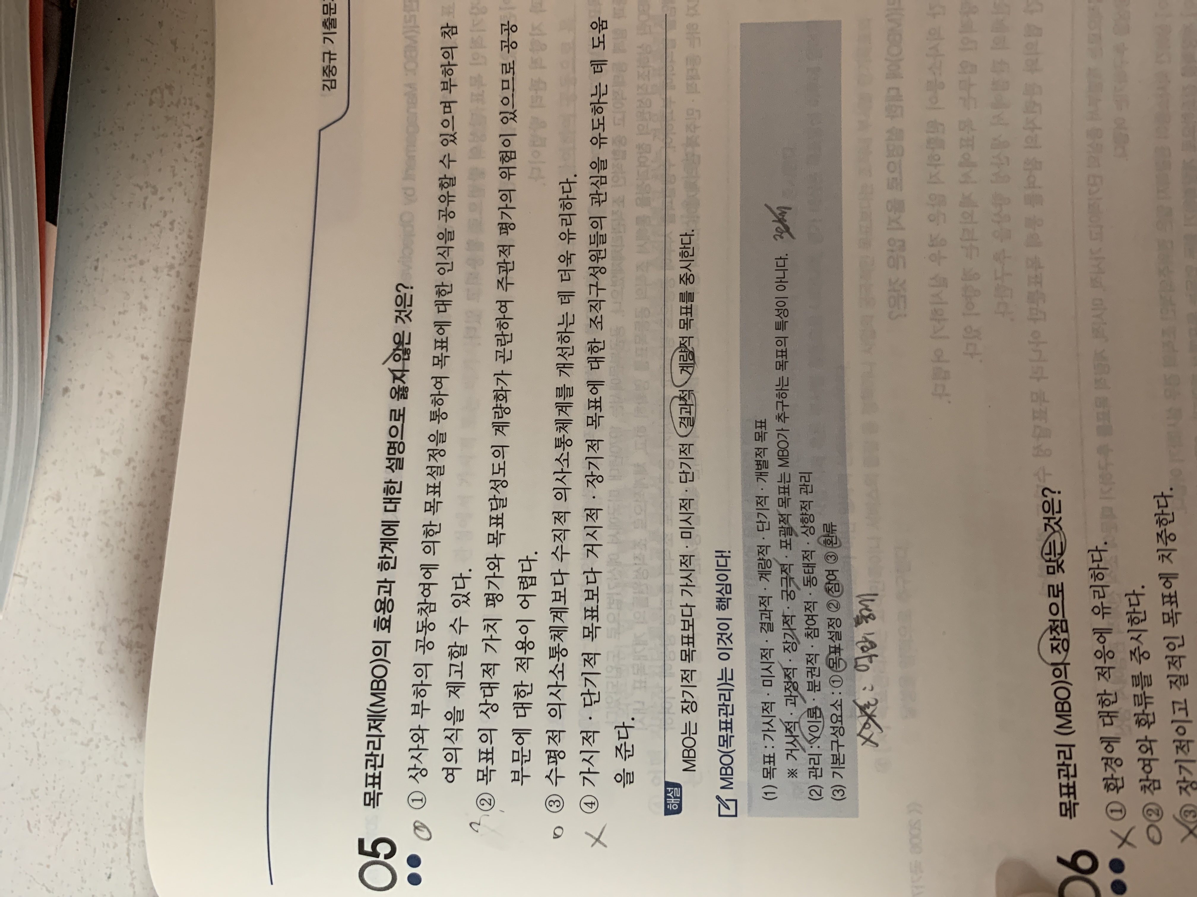5전에 2번에 ~목표달성오의 계량화가 곤란하여~ 라는 말이 잘못된거 아닌가요? 엠비오는 계량화가 가능하다고 써잇어서요..