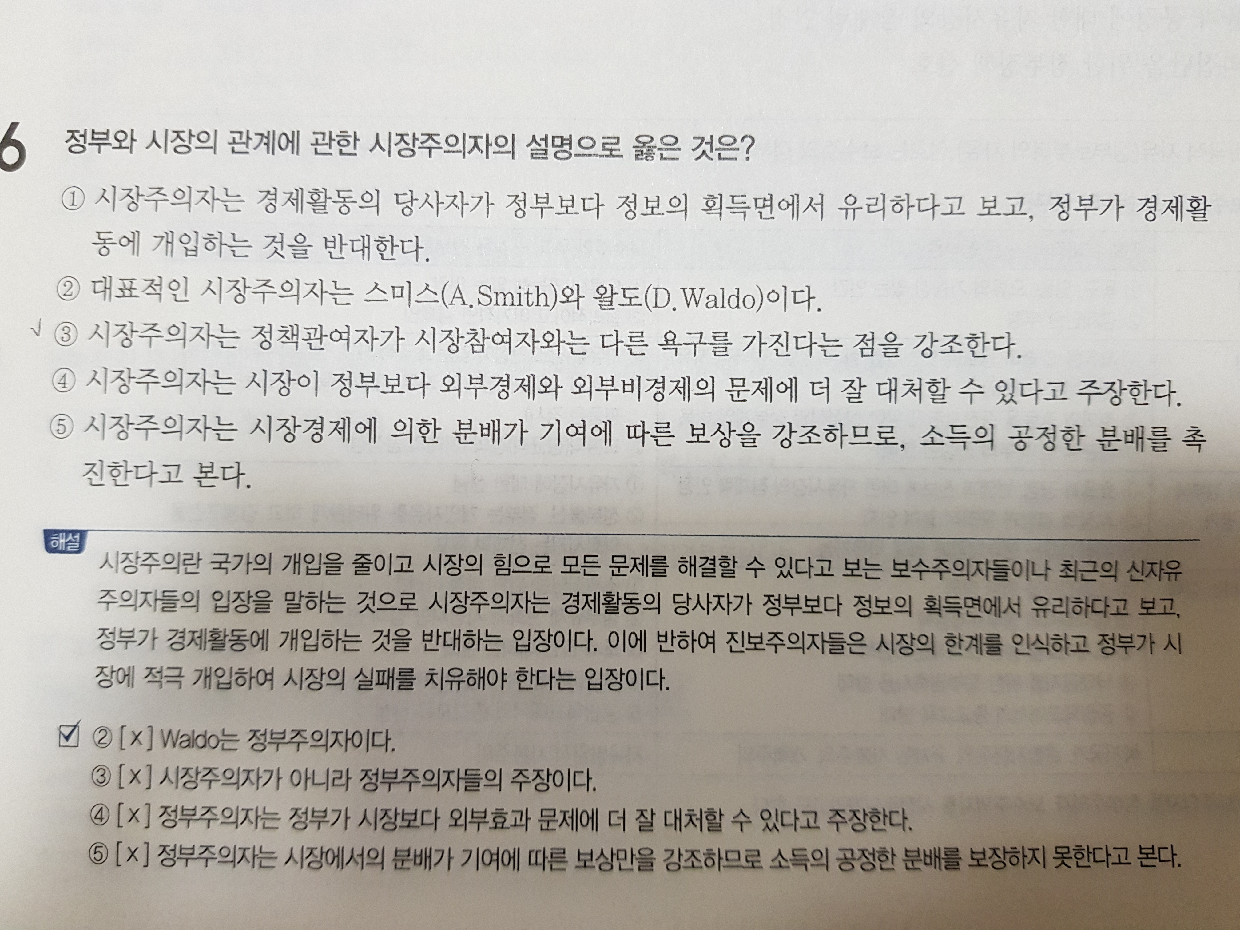 안녕하세요. 이번에 이벤트로 선행정학 기출을 받아서 풀어보고 있습니 . 먼저 책값도 만만치 않은데 이런 이벤트 해주셔서 감사하구요 질문 드릴 부분은 42쪽 6번 4,5번 선지 입니다 사진 첨부 보시면 문제가 4번 시장주의자는 시장이 정부보다 외부경제와 외부불경제의 문제에 더 잘 대처할 수 있다고 주장한다 해설이 정부주의자는 정부가 시장보다 더 잘 대처할 수 있다고 주장한다 써있는데요 시장주의자 = 시장 긍정 정부주의자 =정부 기능긍정 둘다 맞는 지문 아닌가요? 선지 5번도 동일 이유로 질문합니다