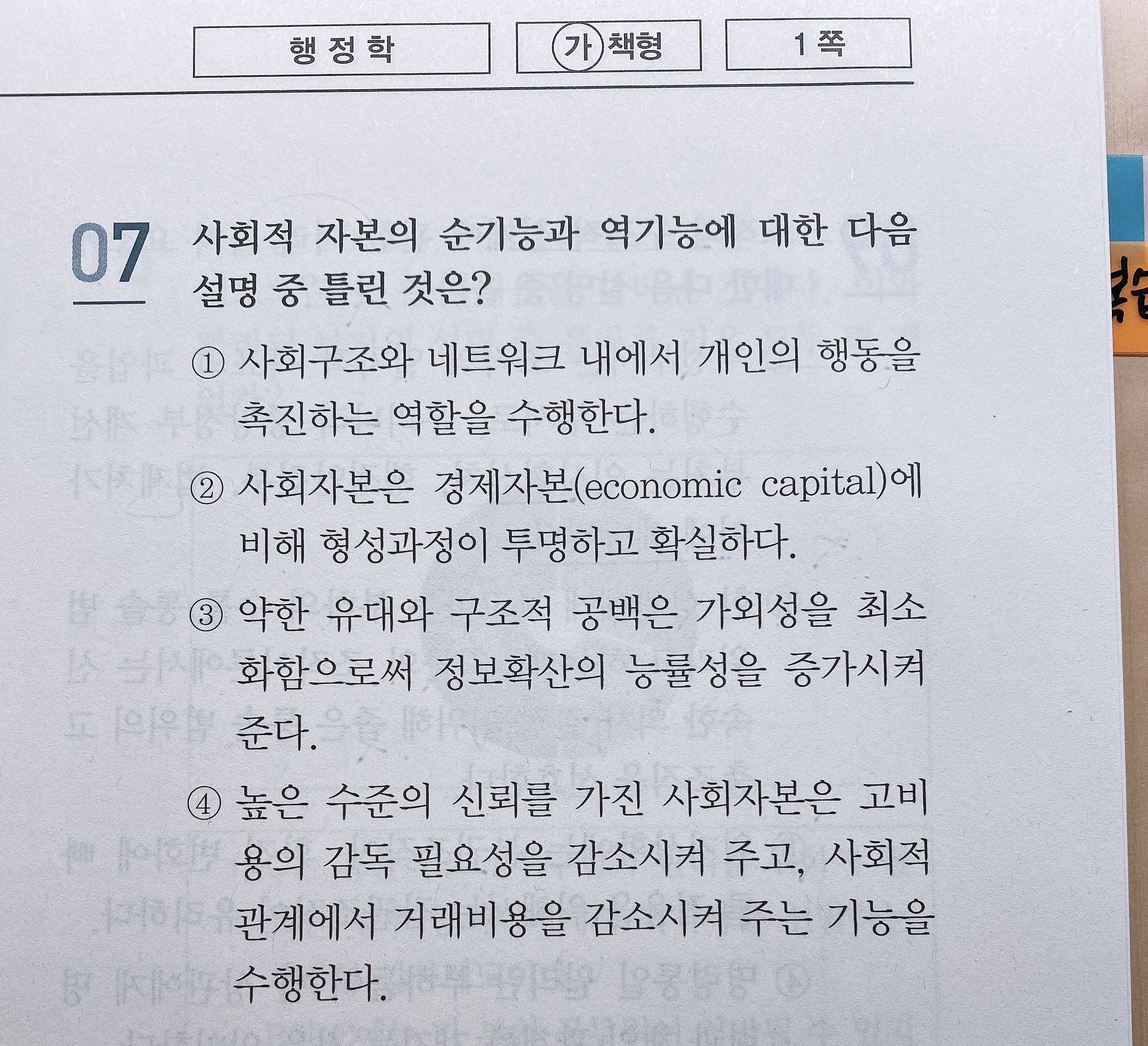 3번 지문 질문드립니다. 네트워크형 사회의 약한 유대와 구조적 공백이라는 특징까진 이해됐으나 이것이 가외성을 최소화함으로써 정보확산의 능률상을 증가시켜준다 는 부분이 이해가 가질 않습니다. 유대가 약하면 위기에 대비해서 가외성이 증가할 거라고 생각돼서요. 기본서를 봐도 이해가 안 되네요 그리고 예전 답변들 찾아서 볼 때, 몇 년 지난 글은 답변글이 잘려 보이던데 원래 그런가요?? +국가9급 대비 모의고사인데, 경간부식 1개 2개 3개 찾는 문제는 왜 있는 건가요? 이렇게도 나오나요? ㅠㅠ