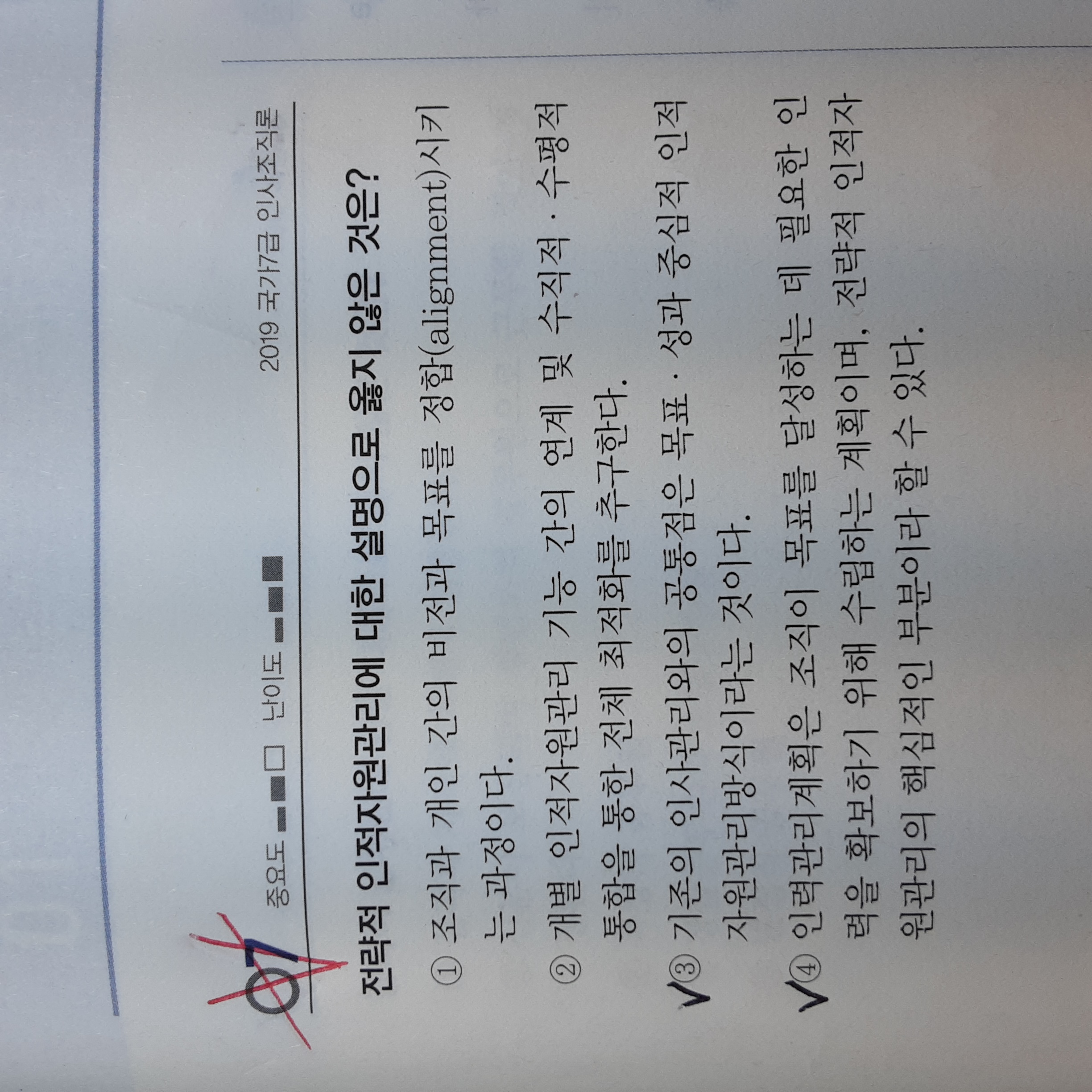 해당 선지에서 기존의 인적자원관리는 전통적 인사관리에 비하면 조직의 성과를 중시하지만, "전략적 인적자원관리와 비교할 때는 조직의 성과를 중시한다고 보지 않습니다."
