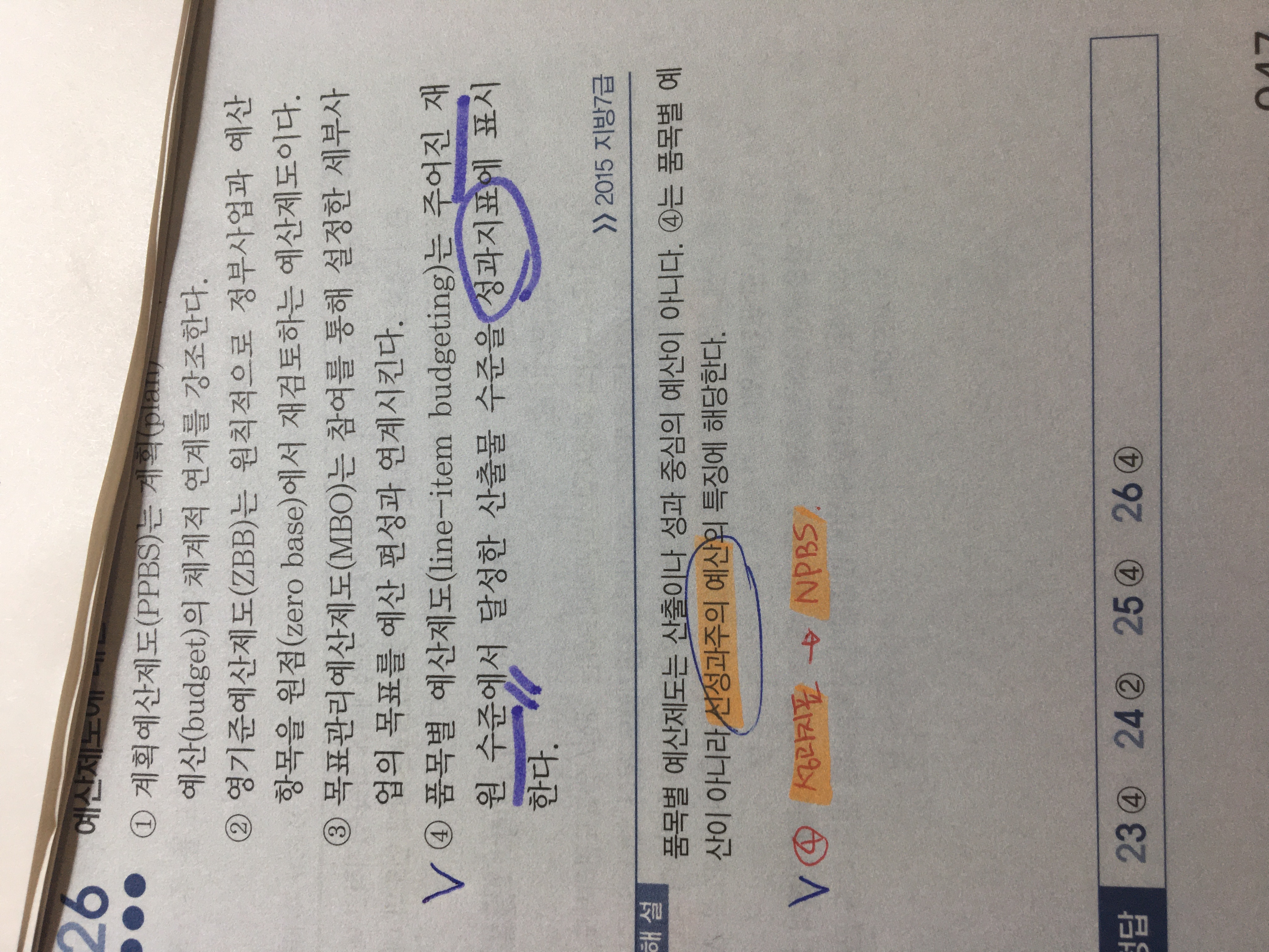 성과주의 예산은 산출 중심이지, 최종성과/정책성과 중심이 아니기 때문에 성과지표에까지 연결하지 못했으며, 따라서 해당 지문은 성과주의 예산으로는 볼 수 없습니다.