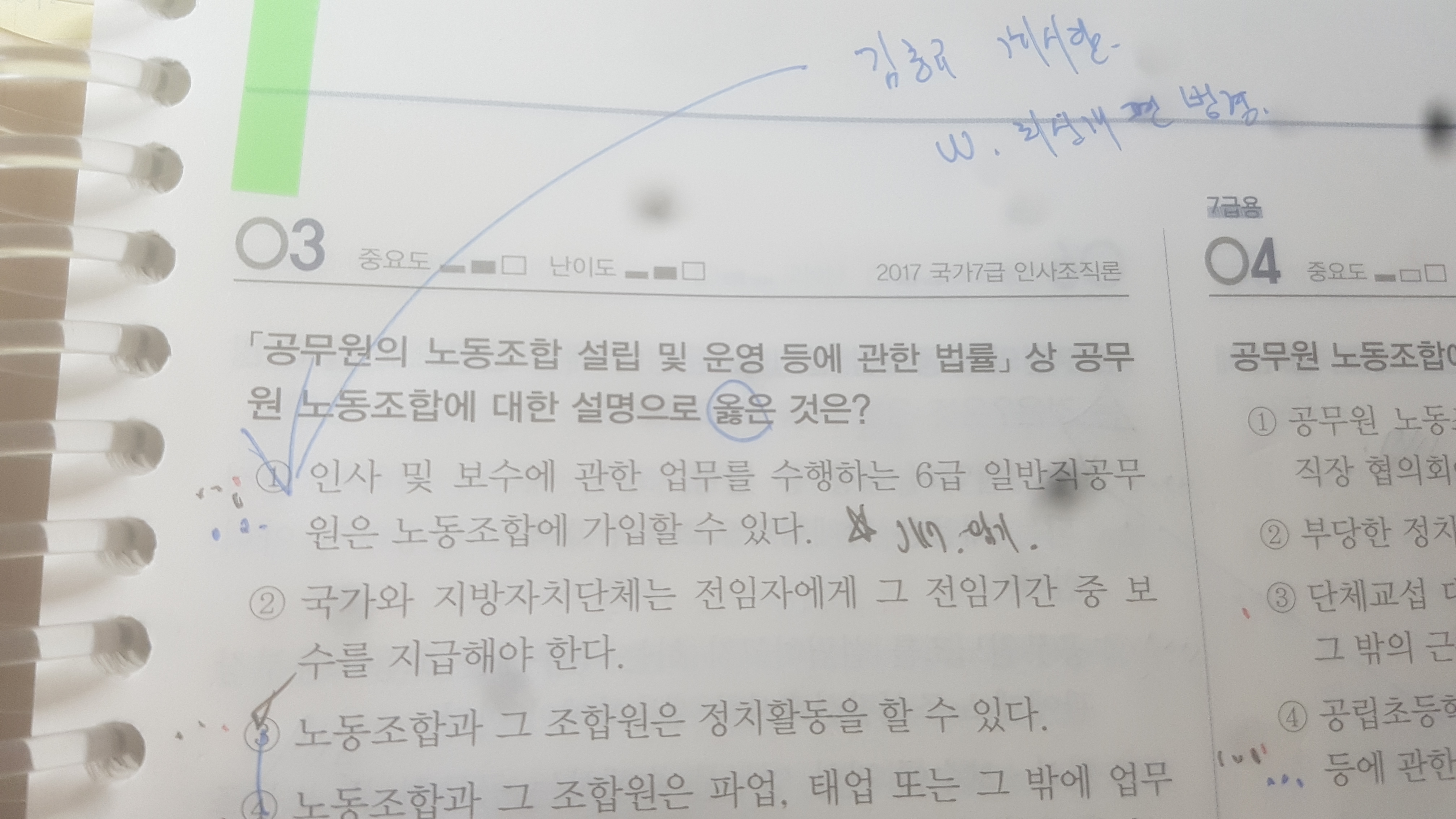 | 제 목 | 7급기출 703p 공무원 노조 질문입니다. | ||