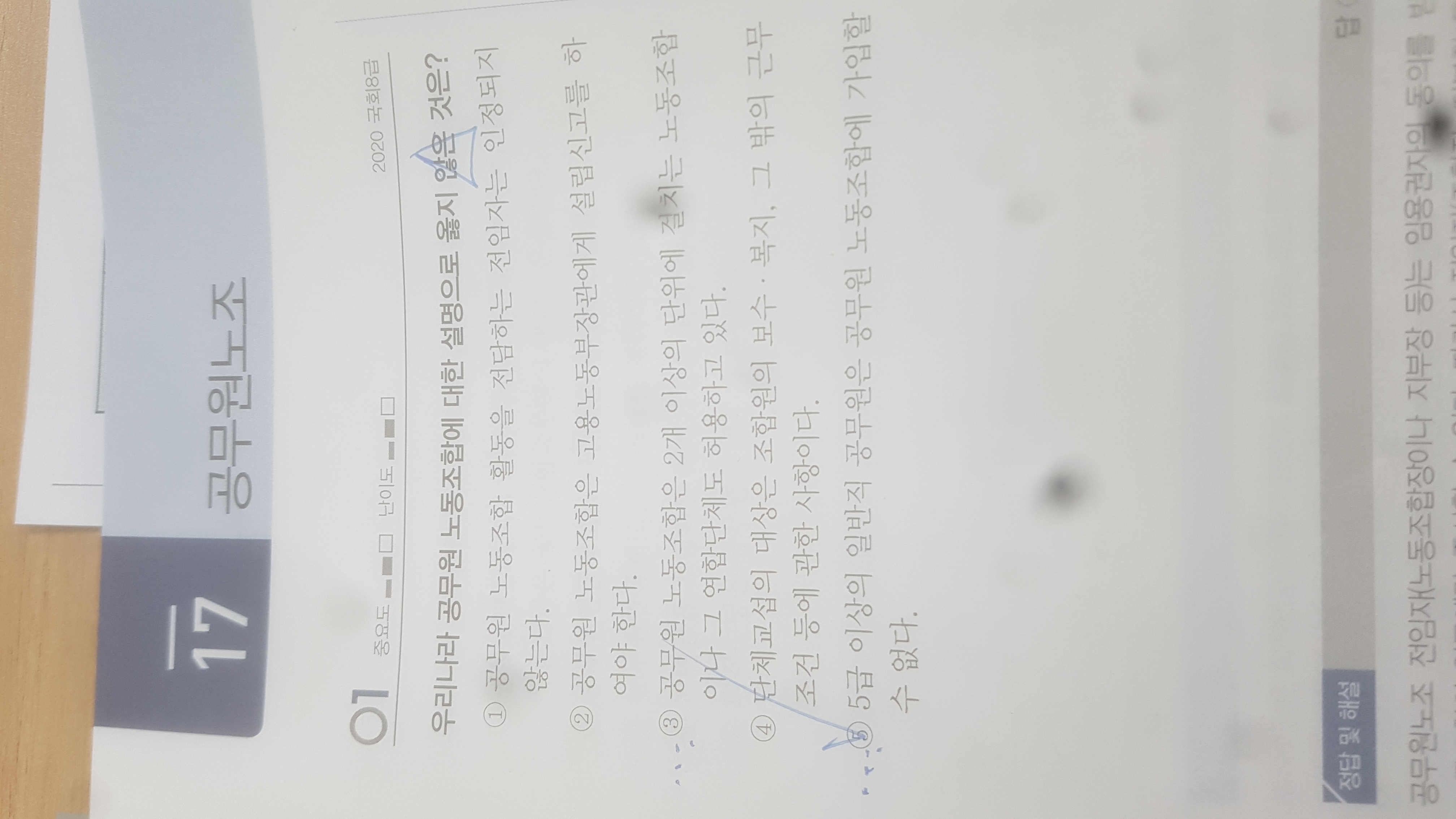 안녕하세요 ? 5번 선지" 5급 이상 일반직 공무원은 공무원 노조에 가입항 수 없다. "