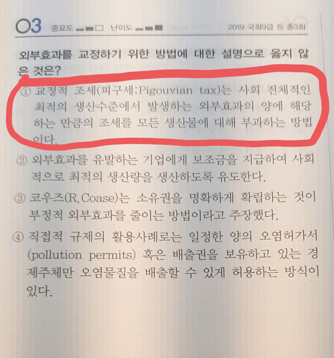 2022년 기본서p.50에 보면 피구세의 예시로서 탄소배출부과금을 드는데요 사진의 설명이 이해가 가지 않기도 하지만 탄소를 배출하는 부분에만 교정적 조세를 때리는 기본서의 탄소배출부과금과는 달리 모든 생산물에 부과를 한다는데... 이 두 가지 설명이 헷갈려서 질문 드립니다.. 외부효과를 발생시킨 특정 대상에게만 교정적 조세를 때라는 것이 피구세의 정의인지, 사진처럼 모든 생산물에 교정적 조세를 때리는 게 피구세의 정의인지... 헷갈려요..