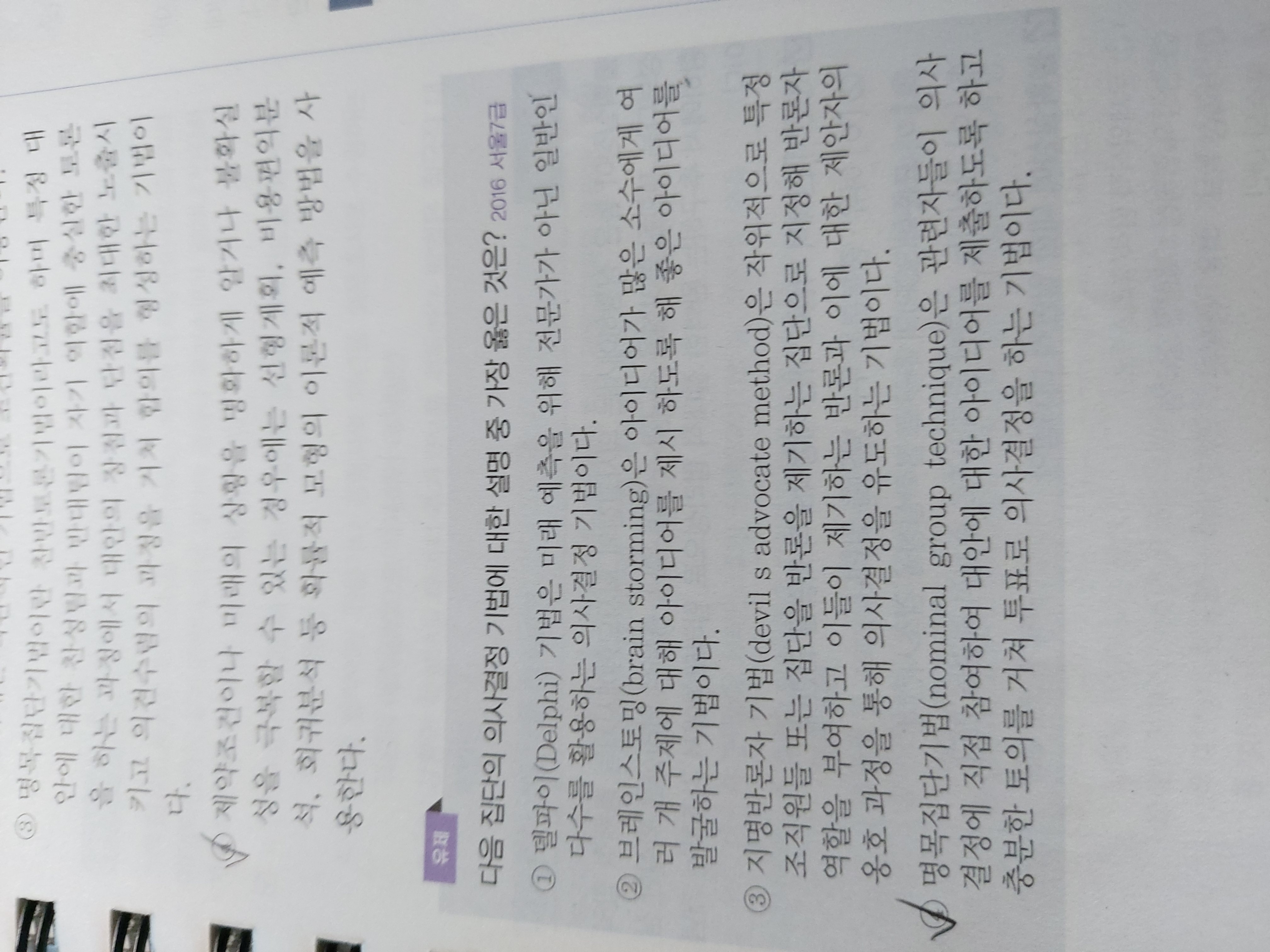 유제 4번지문이 명목집단기법이 아닌건 알겠는데, 그러면 어떤 기법에대한 설명인지 알수있을까요??