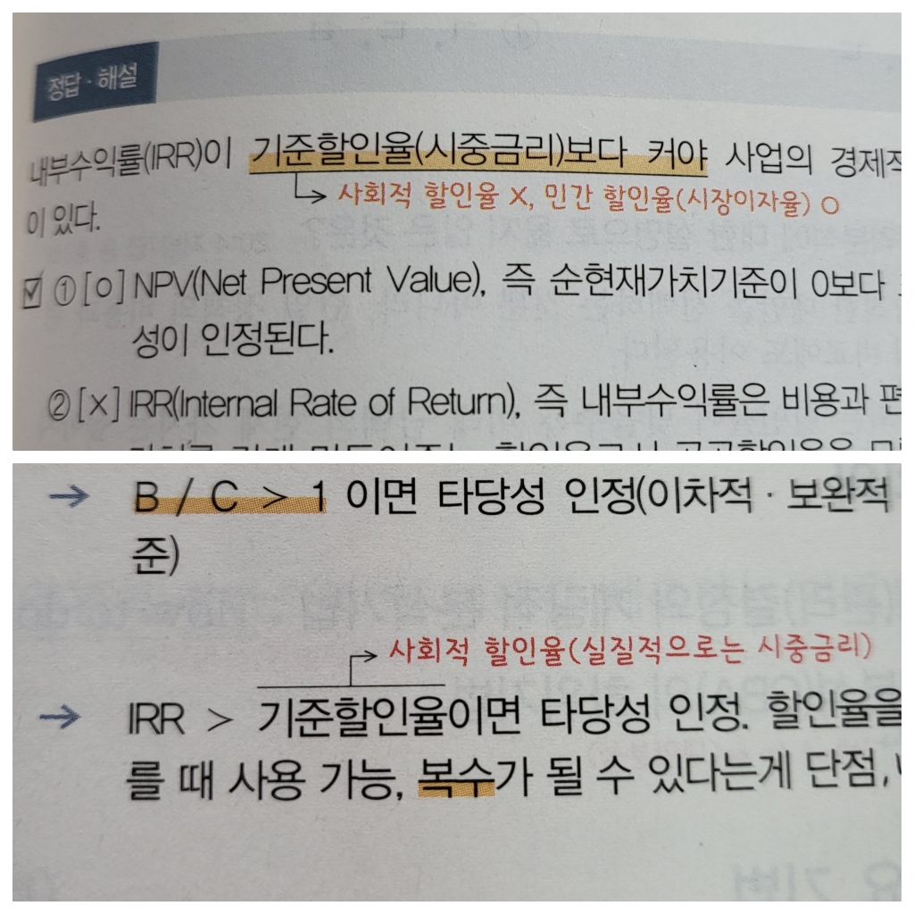 안녕하세요. 내부수익률 관련해서 궁금한 점이 있습니다. 기출에서는 '사회적 할인율X' 라고 적혀있는데, 여다나에서는 '사회적 할인율'이라고 나와있습니다. 제 필기노트에도 '사회적 할인율X' 라고 적혀있는데 오타인가요? 아니면 다른 어떤 의미가 있는건가요??