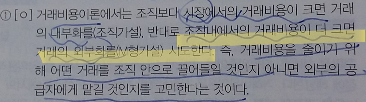 2022 5.0 기출문제집 512p 21번 해설인데요 밑줄 친 부분에서 거래의 외부화(M형 가설) 이 부분이 무슨 뜻인지 모르겠어요 거래의 외부화와 M형 가설이 무슨 연관이 있나요??