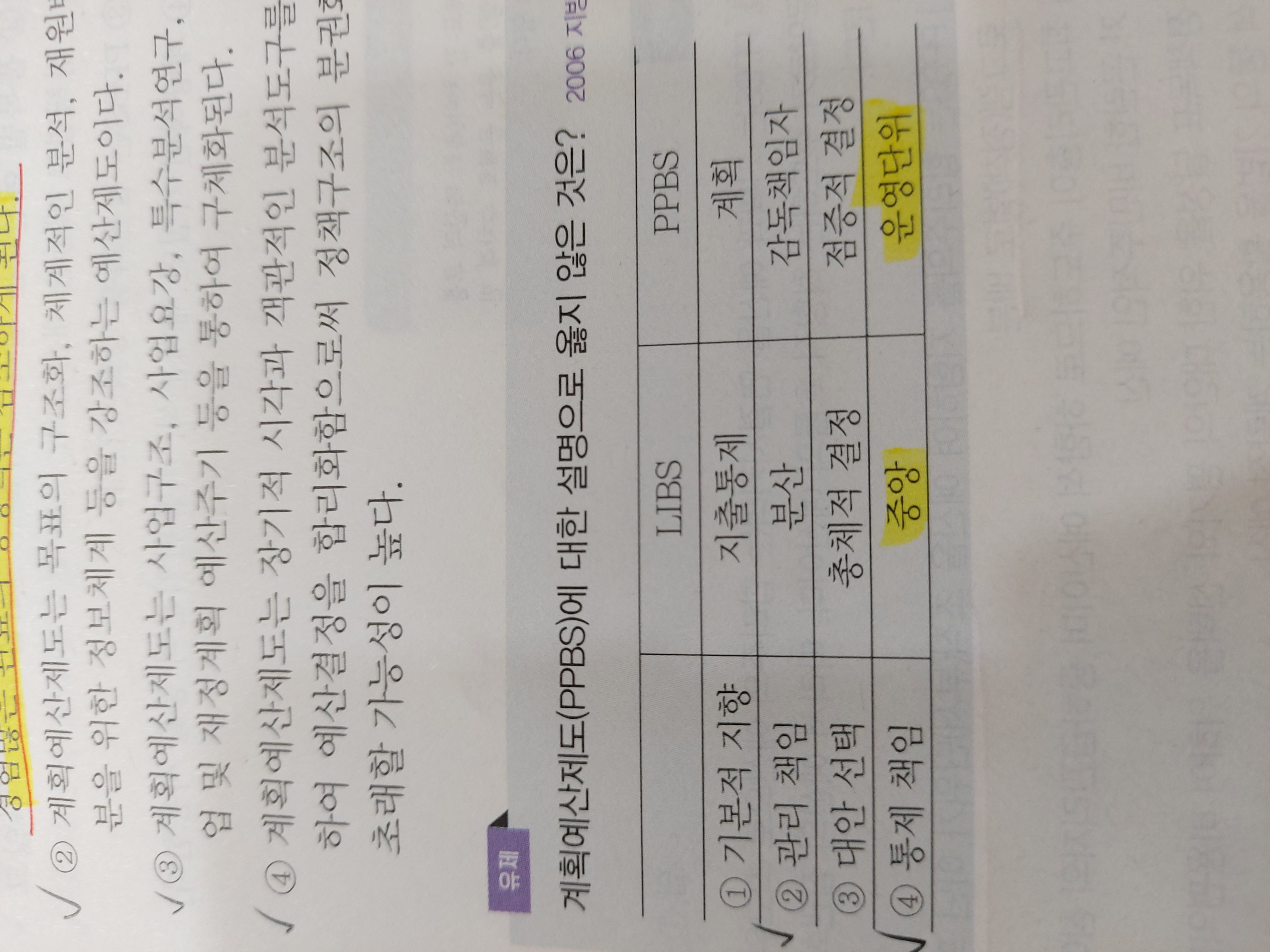 성과주의는 상향식, 분권 계획예산 하향식, 집권인 것입니다.