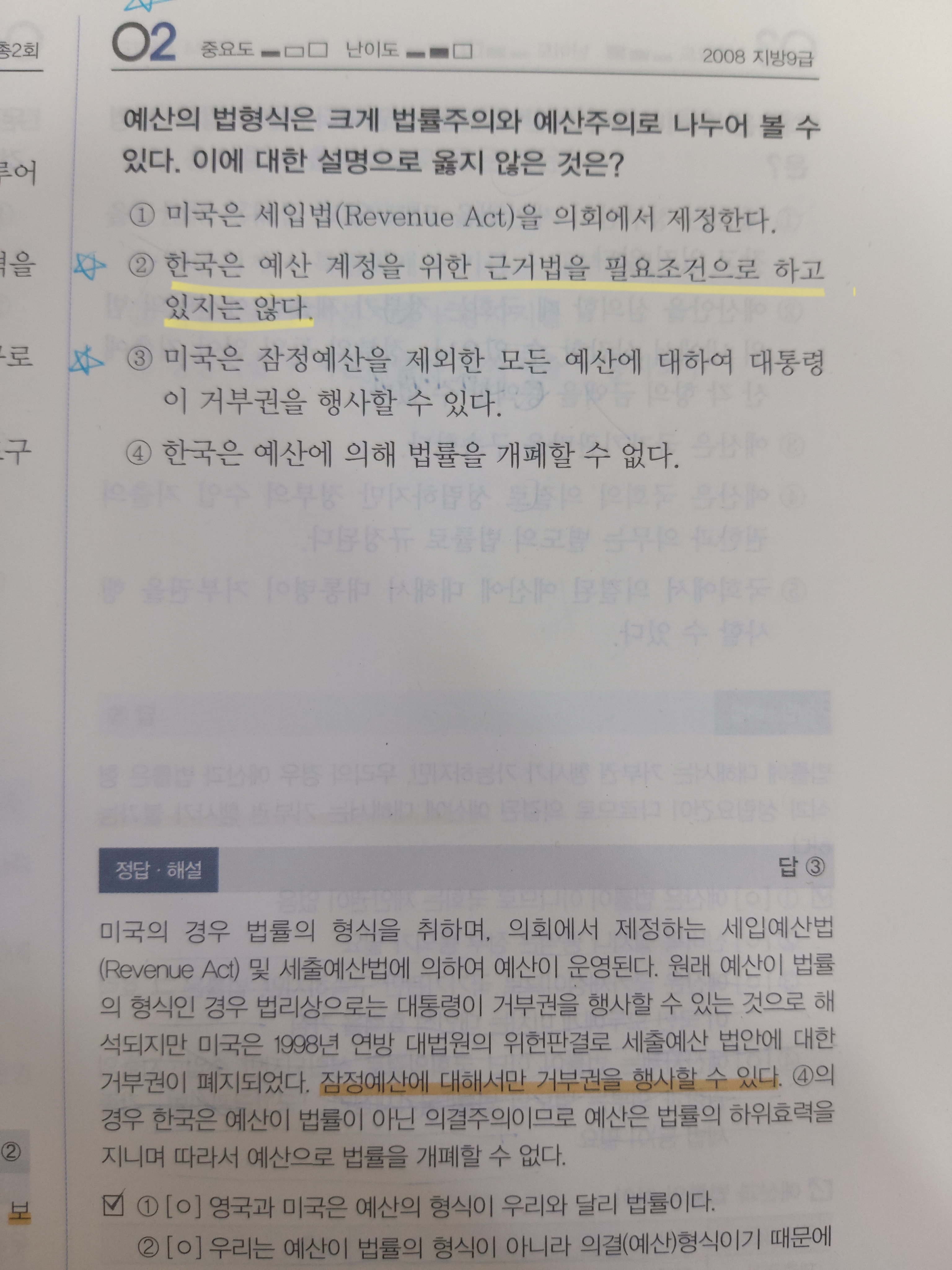 2022 5.0 기출문제 선행정학 699p 2번 질문입니다. [예산 자체는 법률이 아닌 국회 의결로 성립되지만 수입, 지출의 권한과 의무는 별도의 법률이 필요하다]는 문장이 기억나서 2번 선지가 맞다고 생각했는데 아니더라고요.... 2번 선지와 상관없는 문장인가요? 납득이 잘 안 갑니다...