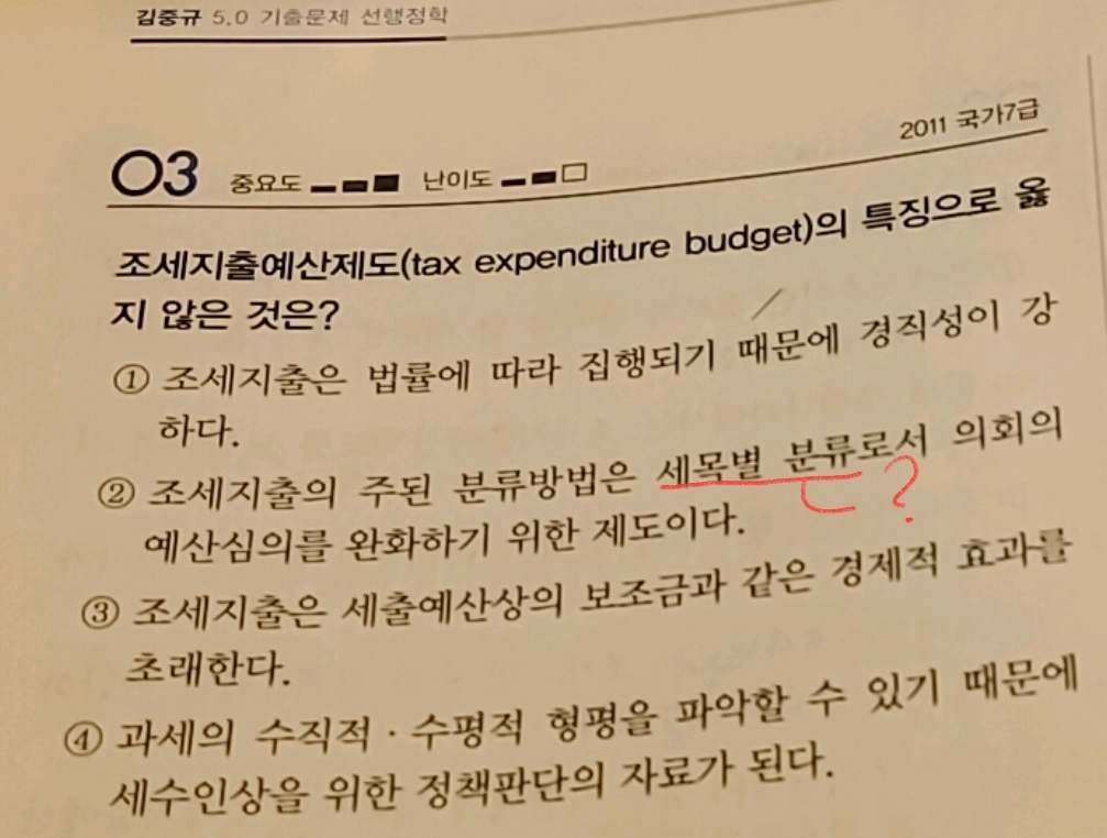 세목별 분류라는 게 무슨 뜻인가요? 저 지문의 내용은 조세지출예산을 심의할 때 조세지출을 프로그램예산처럼 세와 목 으로 구분하여 지출예산안을 작성한다는 의미인가요?