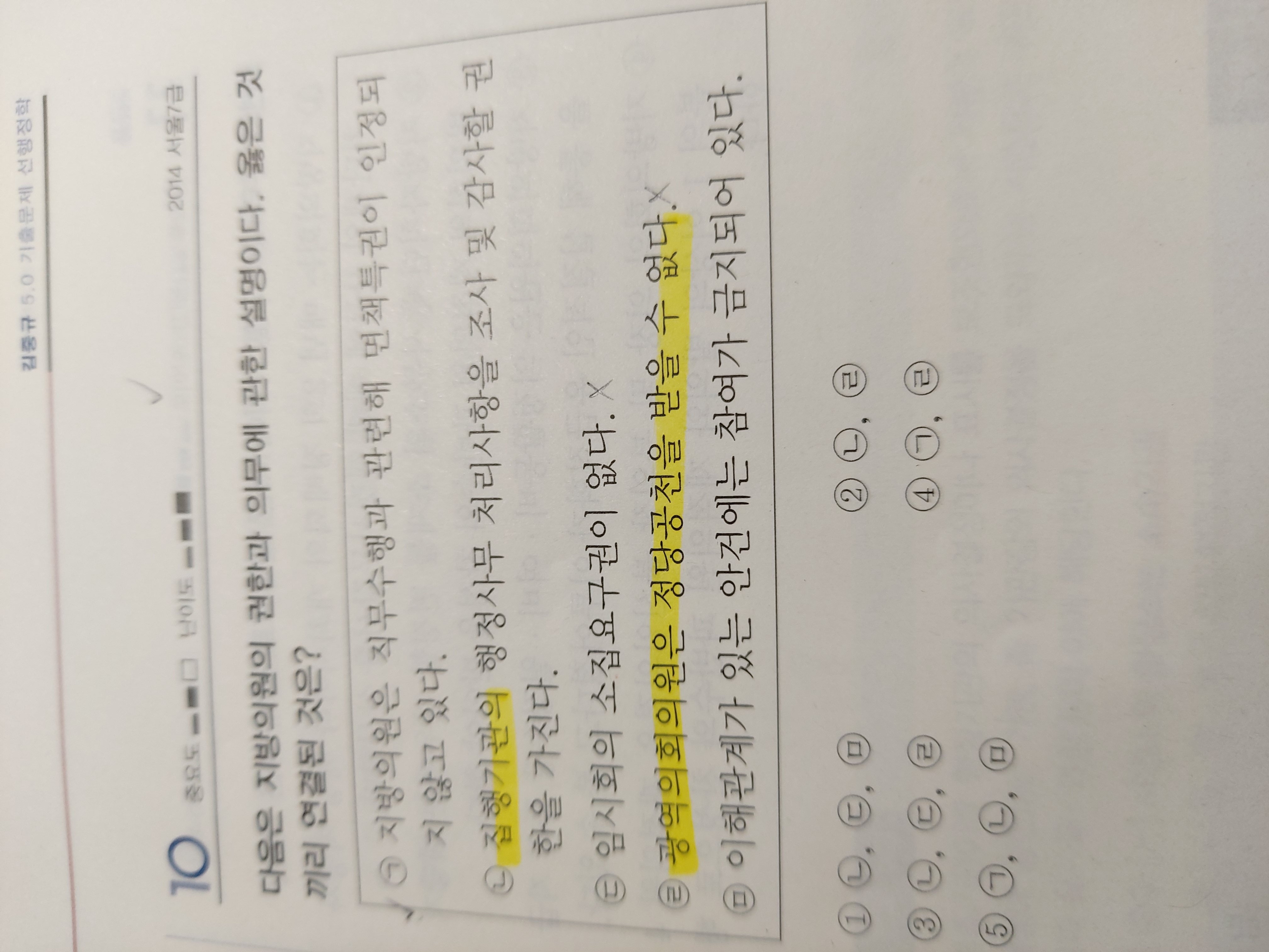 안녕하세요 카스파입니다. 2022 기본서 P.795 꼭알아두기 각주 1: 1) 지방의원은 국회의원과 달리 면책특권 및 불체포특권이 인정되지 아니하며, 이해관계가 있는 안건에는 참여가 금지됨. 감사합니다.