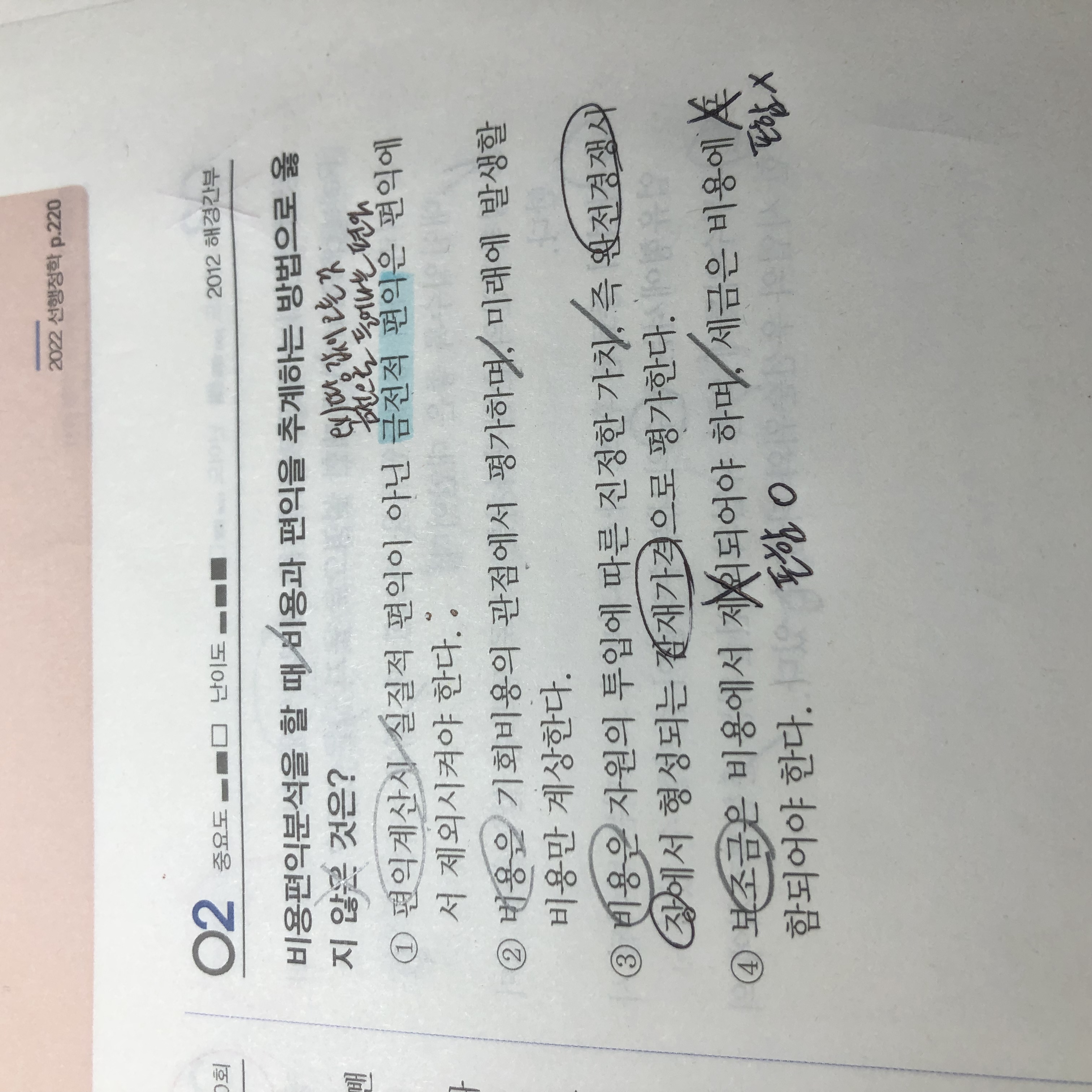 안녕하세요. 선지 4번이 이해가 되지 않아 여쭤보려합니다. 질문1. 비용이란 기회비용이고 편익이랑 소비자잉여로 알고 있습니다. 그런데 4번 선지를 설명해 주실 때 실제 사업에 들어간 비용만을 가지고 추계해야 한다라고 교수님께서 말씀해 주셨는데요? 실제 사업과 비용편익 개념이 어떤 연관성이 있는지... 이해가 어렵습니다. 질문2. 금전적 편익이라는 것이 돈으로 들어나기 때문에 편익계산 시에는 빼야한다라고 말씀해주셨는데요? 그렇다면 보조금도 돈으로 딱 들어나는 편익이니 제외시켜야 하는 것 아닌가요? 먼가 개념이 짬뽕이 된 것 같은데 도움 부탁드립니다. 감사합니다.