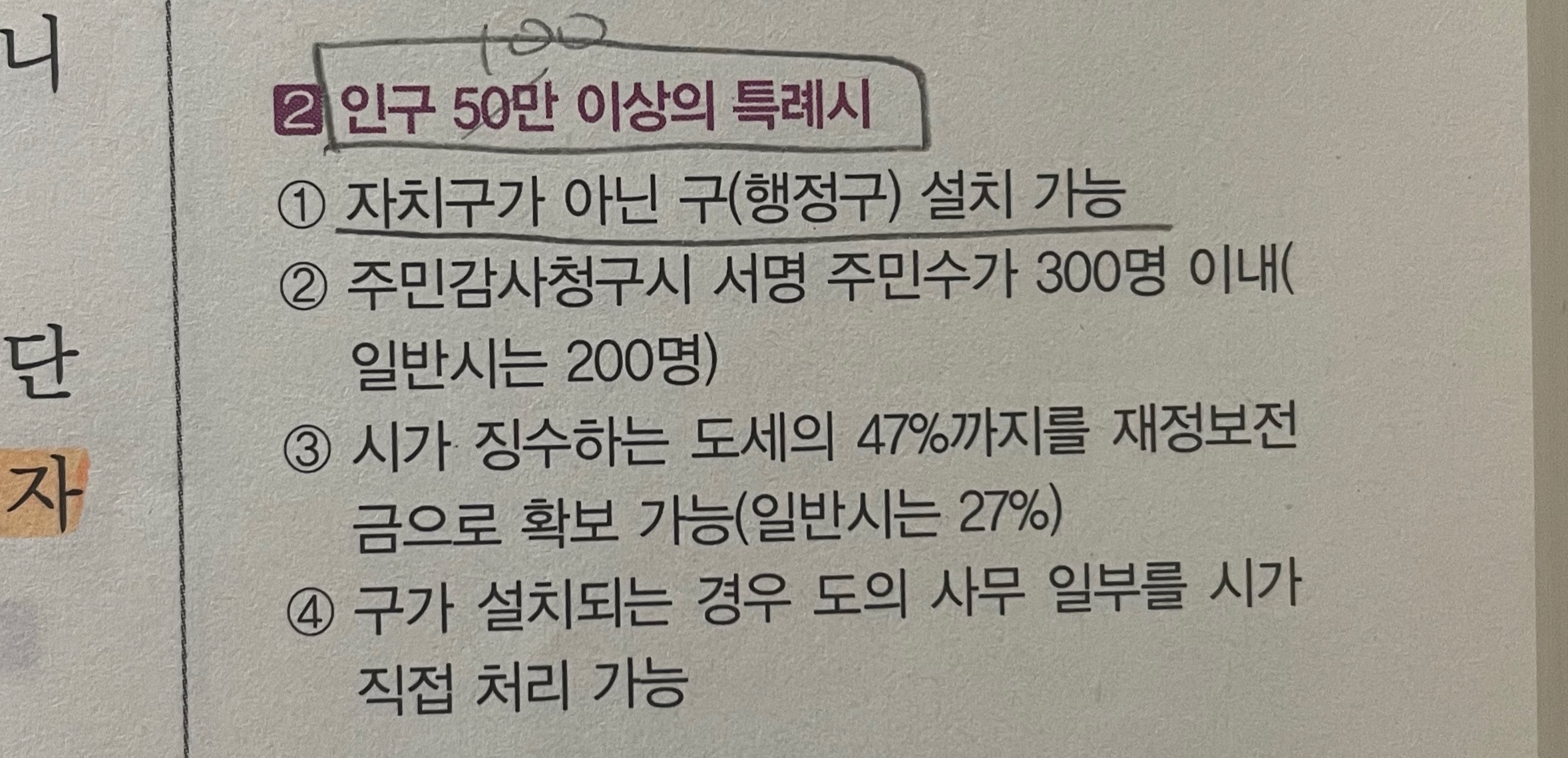 첨부한 사진에서 "인구 50만이상 특례시" 내용이 "인구 100만이상"으로 개정된 것 맞나요?? 자치구가 아닌 구 설치 가능 등의 내용이 "인구 100만 이상"일 때가 맞는건가요??