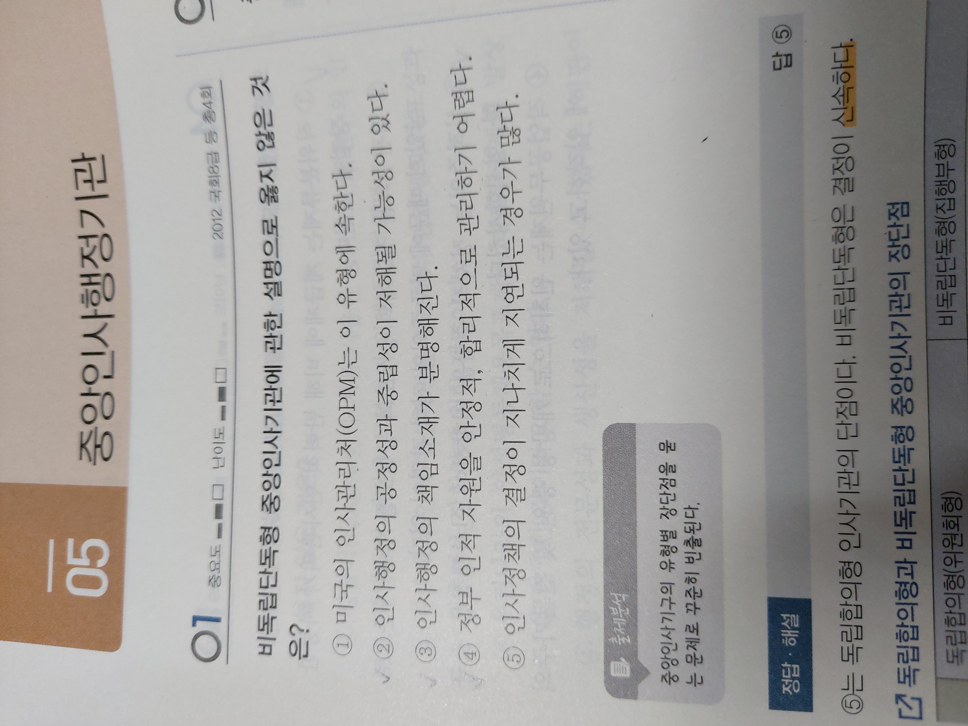 비독립=>중앙인사행정기관이 소속되는 행정수반 등의 영향을 받을 수 있고