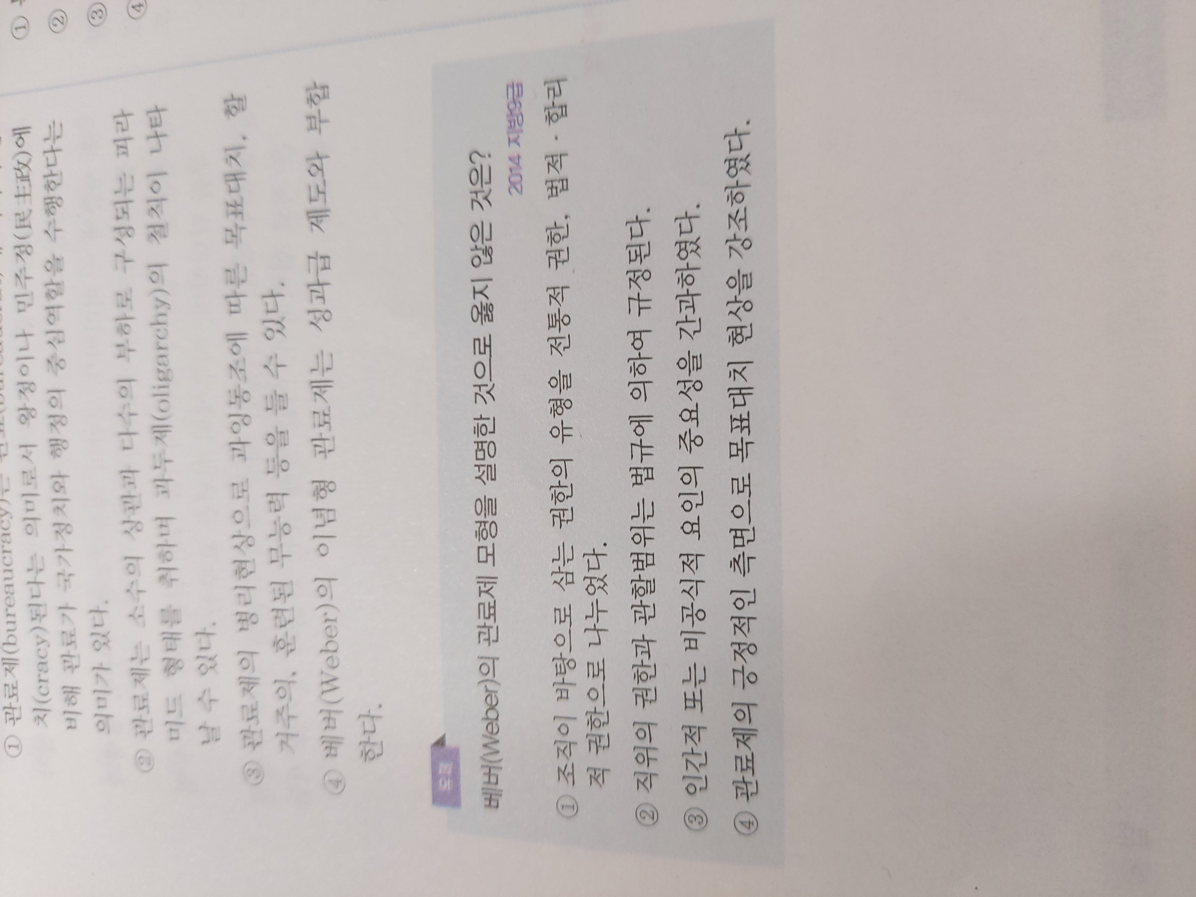 유제에 1번지문이 정확히 말하면 전통적, 카리스마적, 법적.합리적 이렇게 3가지로 나뉘는데 어쨋든 1번지문은 맞다고 보는건가요? 아니면 제가 잘못알고있나요 .??