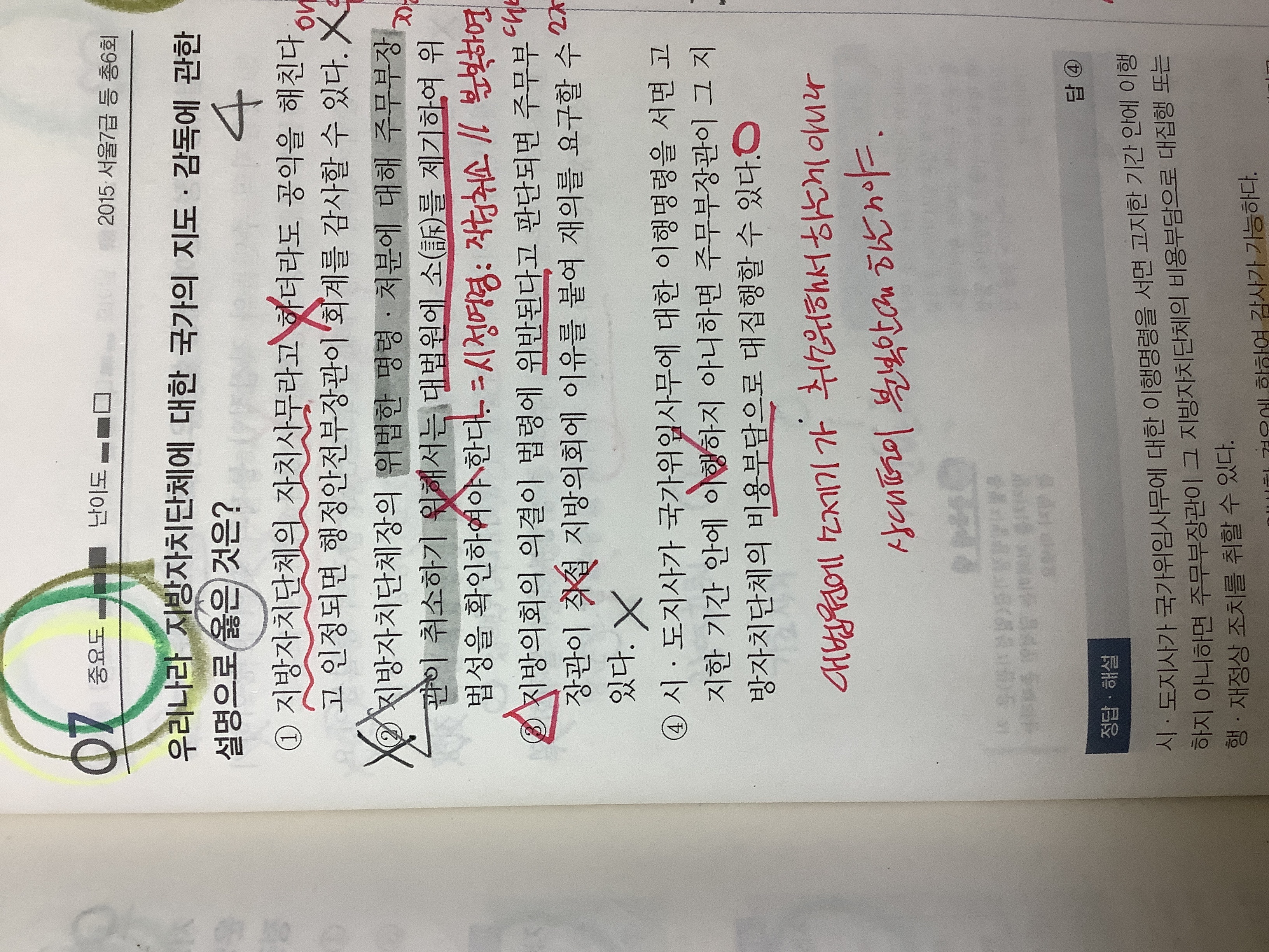 주무부장관이 직접 시정명령과 명령 처분이 다른 취소 정지를 할 수있도록 함 -> 이면 이제 '요구하게 할 수있다는 ' 틀리게 되는거아닌가요??? 요구하게 할 수도 있고 직접 할 수도있으니까 두개 다 맞나요??? 그렇다면 기출 p393(사진첨부했습니다) 7번문제 3번도 답이 될수있지않나요!!? 정오표에는 없어서,,, 제가 잘못 이해한건가 싶어서 여쭤봅니다! 세번째사진도 요구 지시라고 바꿔주셨는데 그러면 재의요구하게할수있다는 틀린가요??. 이 개념관련해서 어디까지허용되는건지 모르겠습니다ㅜㅜ 감사합니다!!