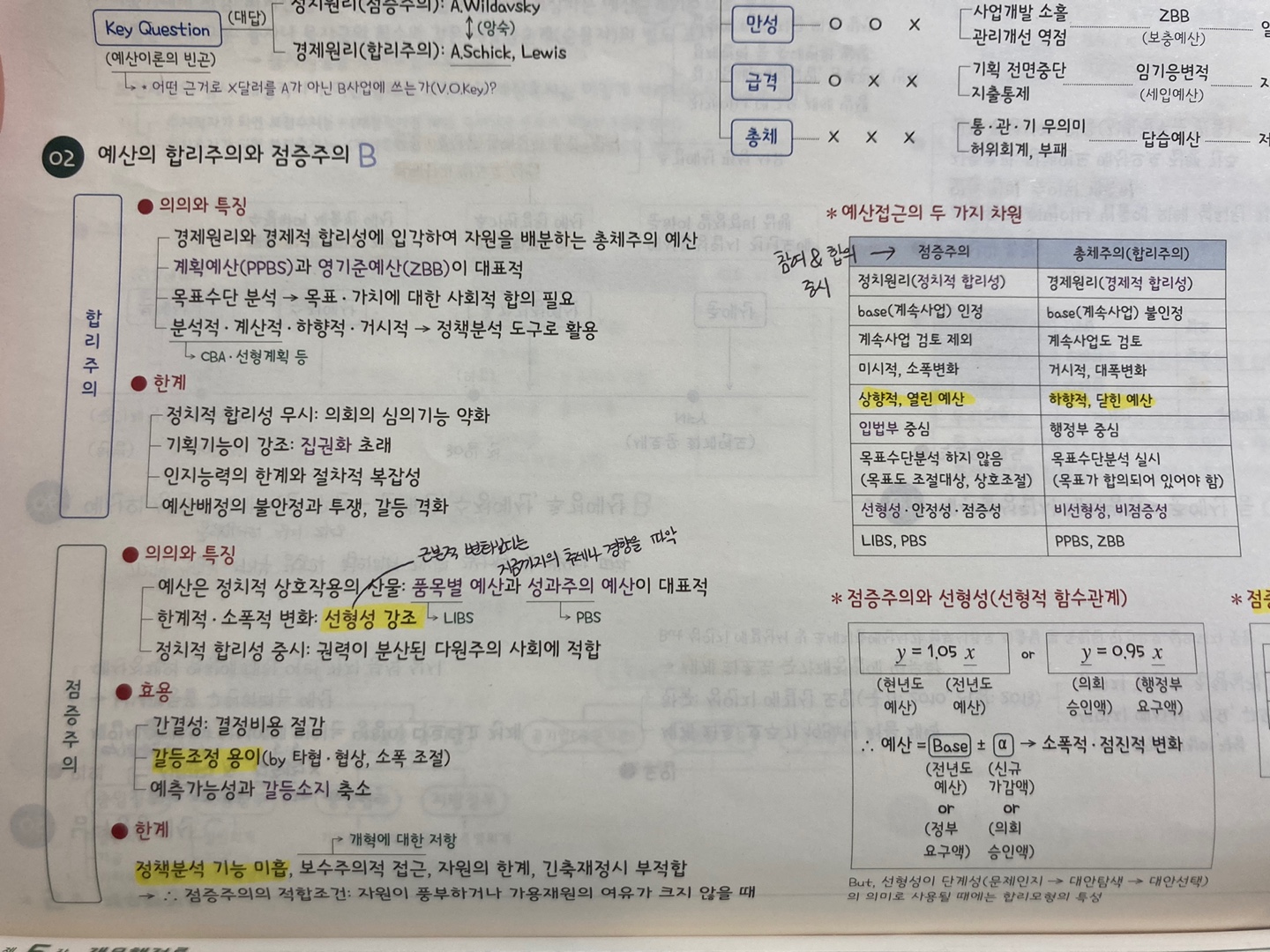 +덧붙여 설명드리면 선형적 뒤에 붙는 말이 '함수관계'인지 '과정'인지로 점증주의, 합리주의를 구분하는 게 아니라,