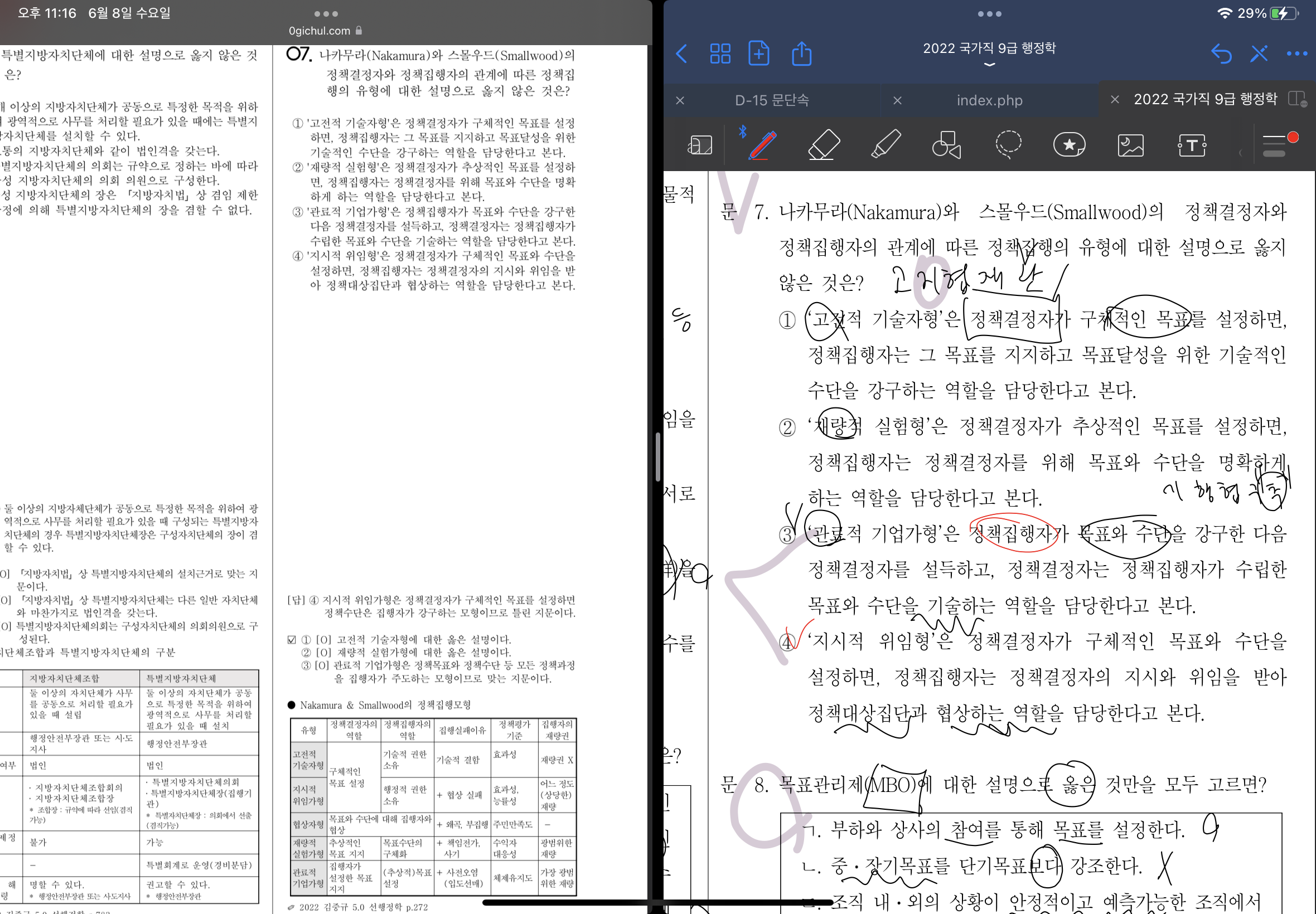7번에 4.지시적 위임형은 정책결정자가 구체적인 목표와 수단을 설정하면,