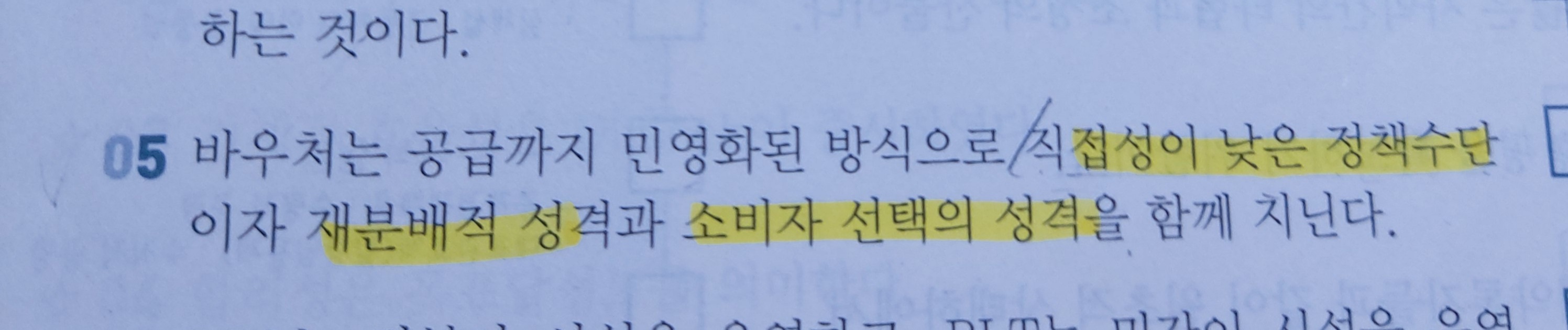 안녕하세요 카스파입니다. 바우처는 직접 돈을 주는 현금 보조와는 다르게, 저소득층과 같은 소비자에게 구매권에 명시된 금액만큼 특정재화나 서비스를 구매할 수 있는 지불수단을 제공하기에 직접성이 낮습니다. 감사합니다.