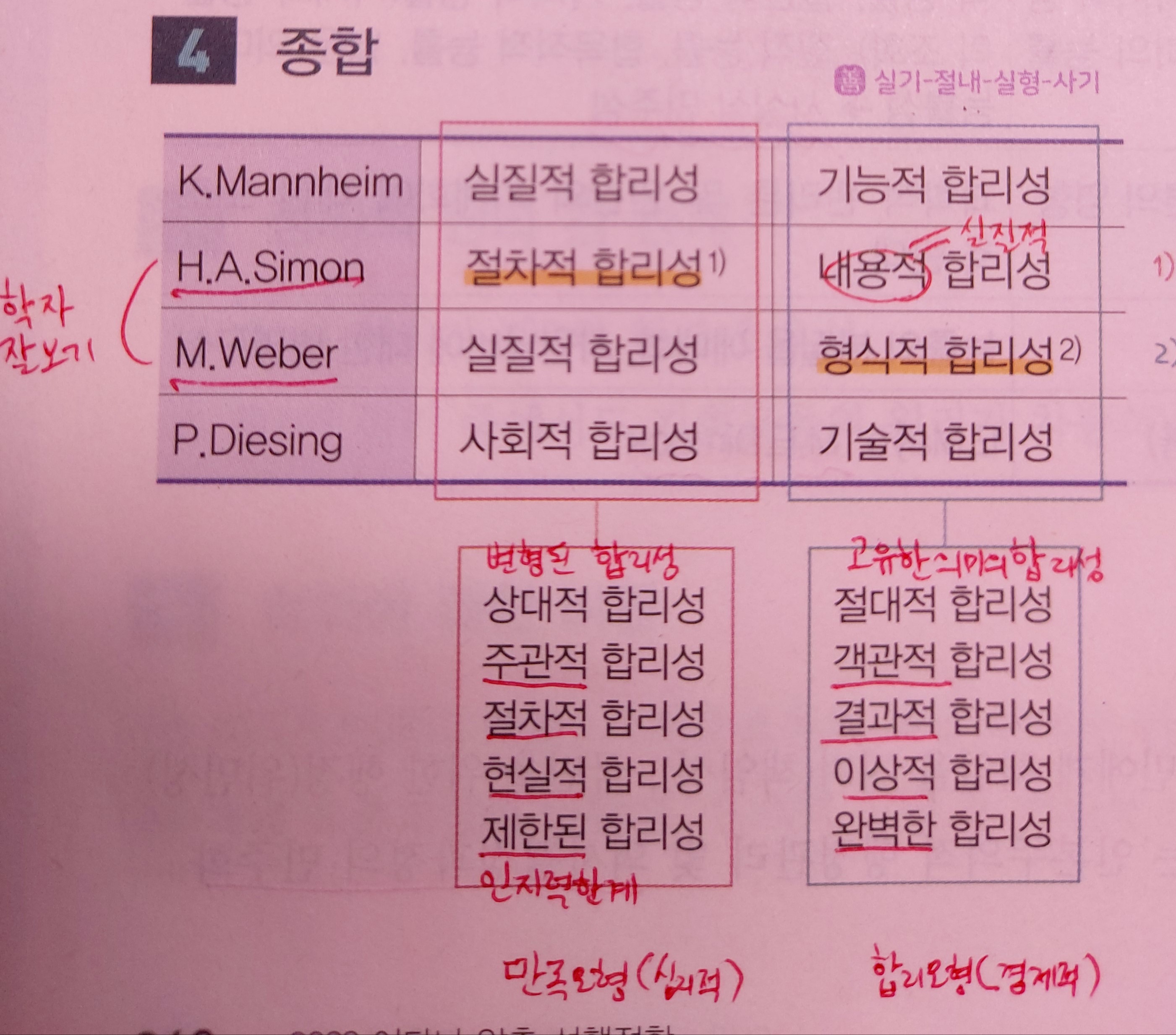 합리성의 유형에는 이성적·인지적 사고 작용 판단을 통한 주관적 합리성과