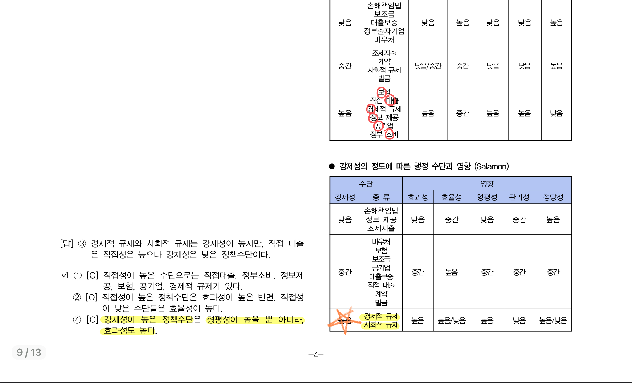 22 서울 지방 9급 문제 해설하시면서 강제성의 정도에 따른 행정 수단과 영향 (Salamon) - 강제성 높음 사소법공경(사회적규제, 정부소비, 법, 공기업, 경제적규제)라고 강의 풀이해주셨던게 있어 따로 정리해뒀는데 2022 7급 대비 파이널 신경향 예상문제(2) p.4 하단 표 보면 강제성 높은 게 사회적규제, 경제적규제만 나와있는데 뭐가 맞는 것인가요?