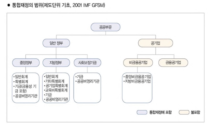 따라서 이제 금융성기금, 외환평형기금, 공공비영리기관(준정부기관)도 모두 통합재정에 포함됩니다.