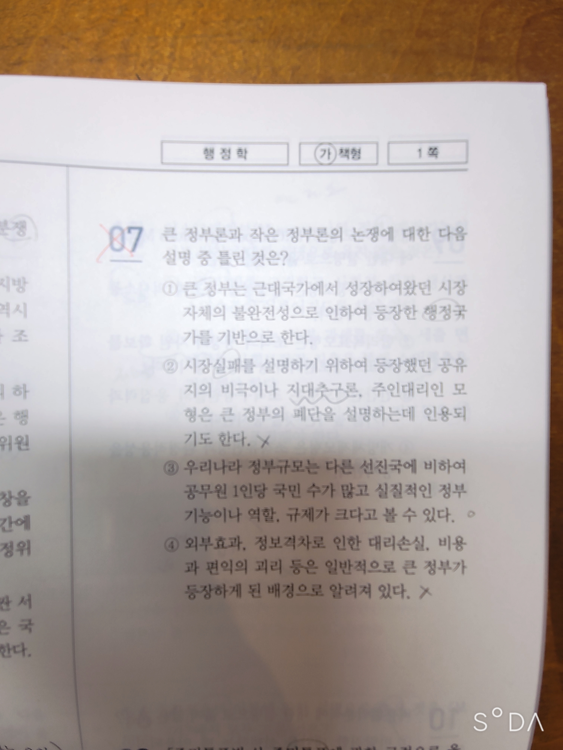 안녕하세요 지방직7급 제8회 모의고사 7번에서, 2번 선지가 마음에 걸려 여쭈어보고 싶습니다. (정답 4번)