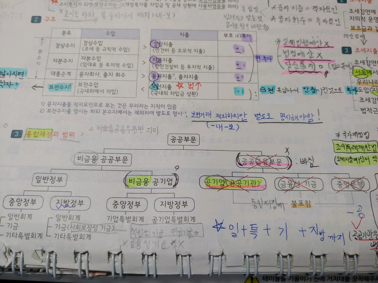 국회직 9급 7번 보기 2번 > 답없음 인데요, 21년 필기노트 132p를 보면 제일 아래 통합재정의 범위에 비금융공기업은 포함되는데 공공금융부문인 공기업, 금융성기금, 중앙은행은 불포함이라고 되어있는데, 바꿔야되나용??