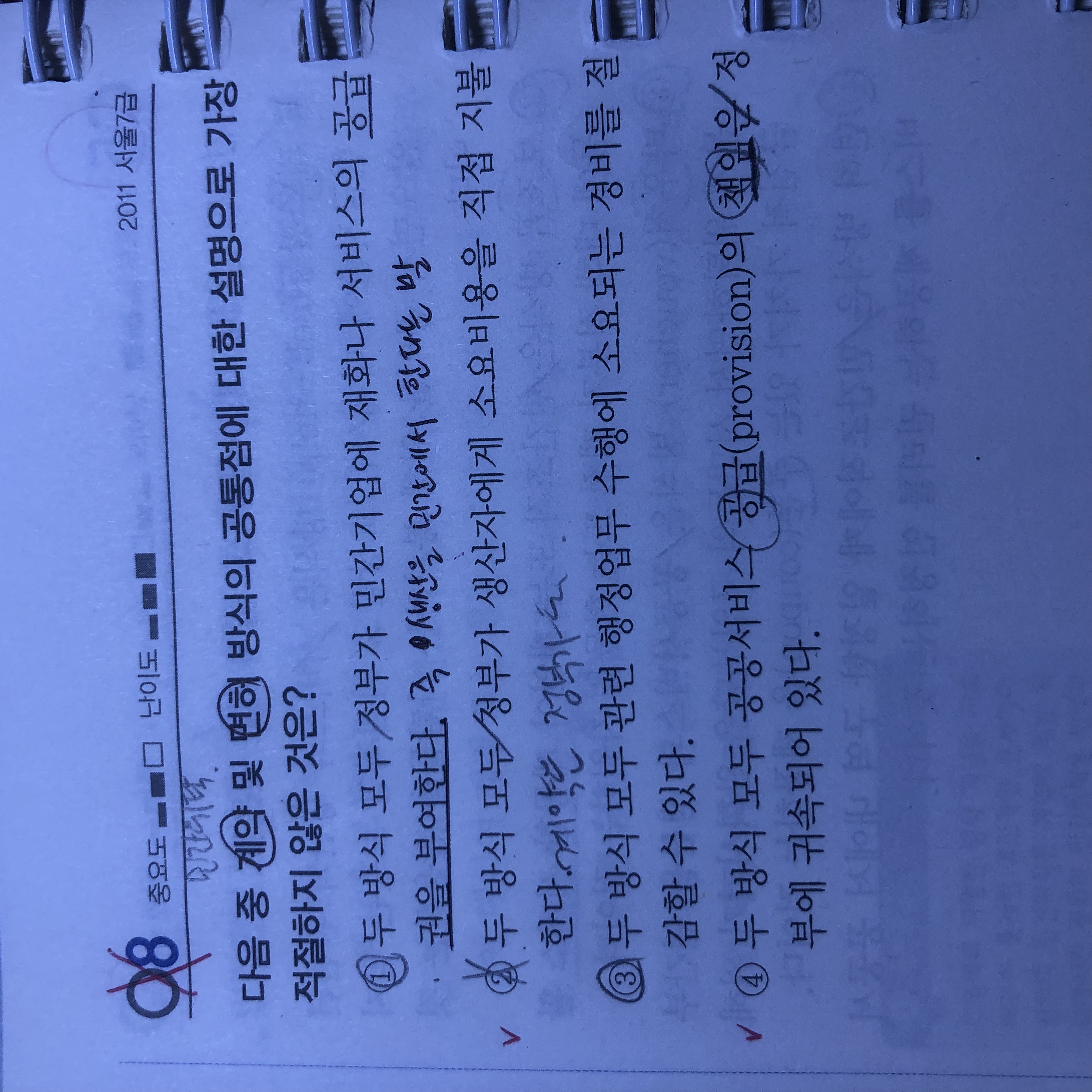 안녕하세요. 선지 1번: 여기서의 '공급'이란 생산을 의미한다고 하는데, 문제에서 공급인지 생산인지 구분을 어떻게 해야 하나요?... 선지 4번: '면허'의 경우에는 사바스의 민영화 유형에서 어디 있는건가요? '계약'은 찾았는데 '면허'는 표에서 어느 부분에 해당하는지 모르겠습니다. 감사합니다.