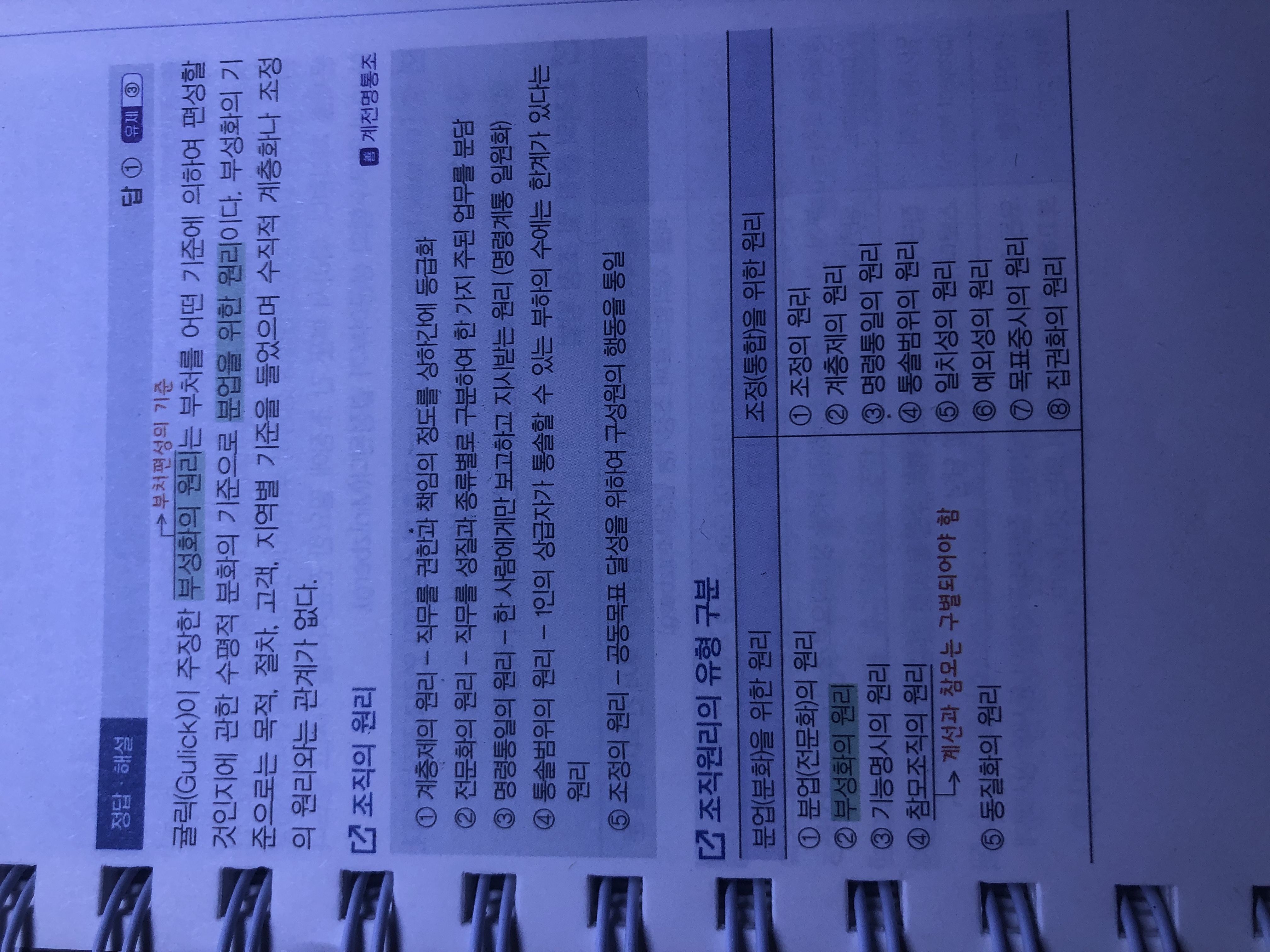 고전적 조직론 안에서 '분업의 원리'와 '조정을 위한 원리'로 나눠지는 건가요?