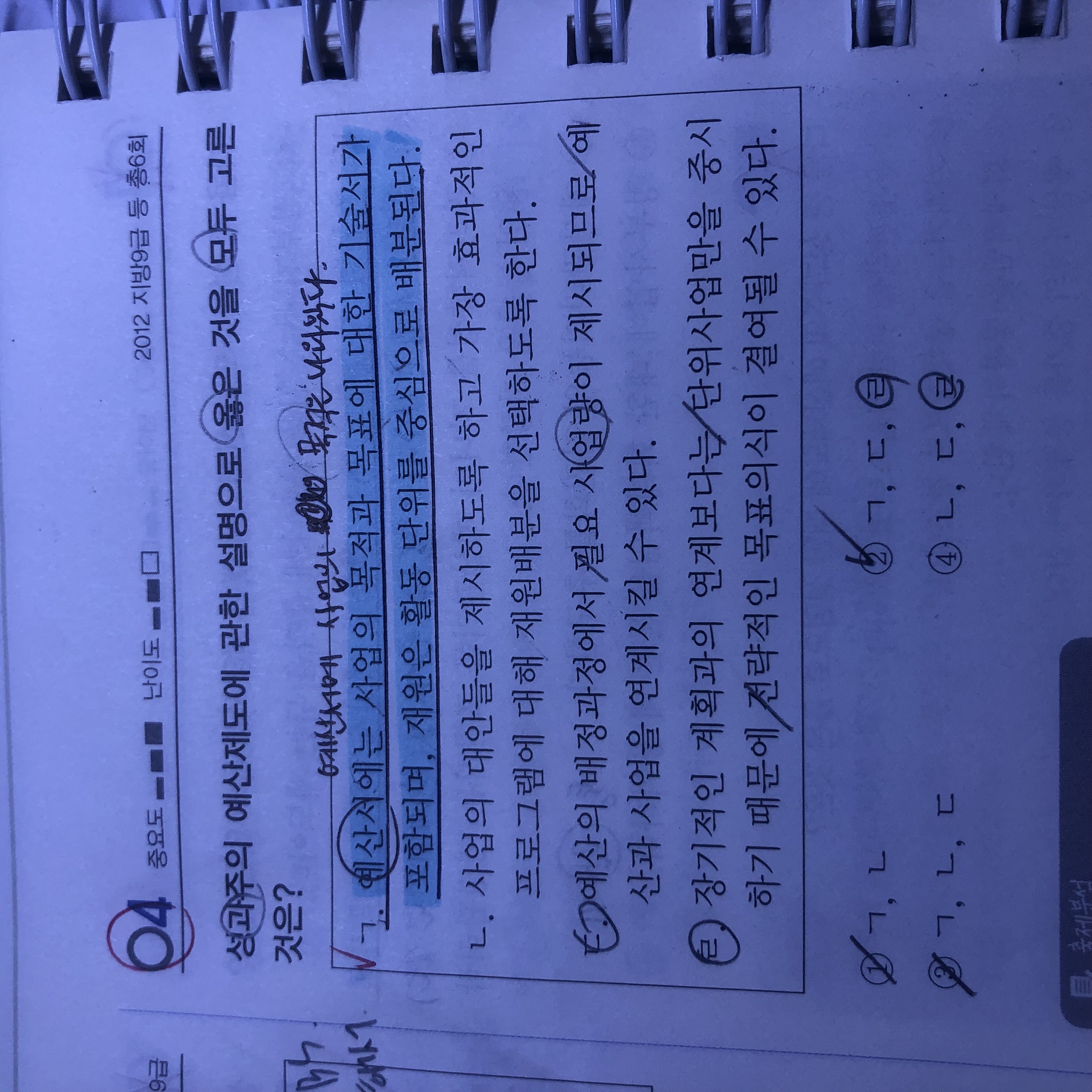 안녕하세요. 선택지 ㄱ) 예산서에 사업의 목적과 목표가 나온다고 하는데, 성과주의는 투입과 산출의 관계를 중요시하지만 '정책목표'를 고려하지 못한다라고 하잖아요? 그런데 목표가 맞다라 하니 헷갈립니다. 사업의 목표와 목적은 알아도 정책목표와 그 목표를 달성하기 위한 대안 탐색이 불가능힌 것으로 구분해서 알아두면 될까요? 감사합니다