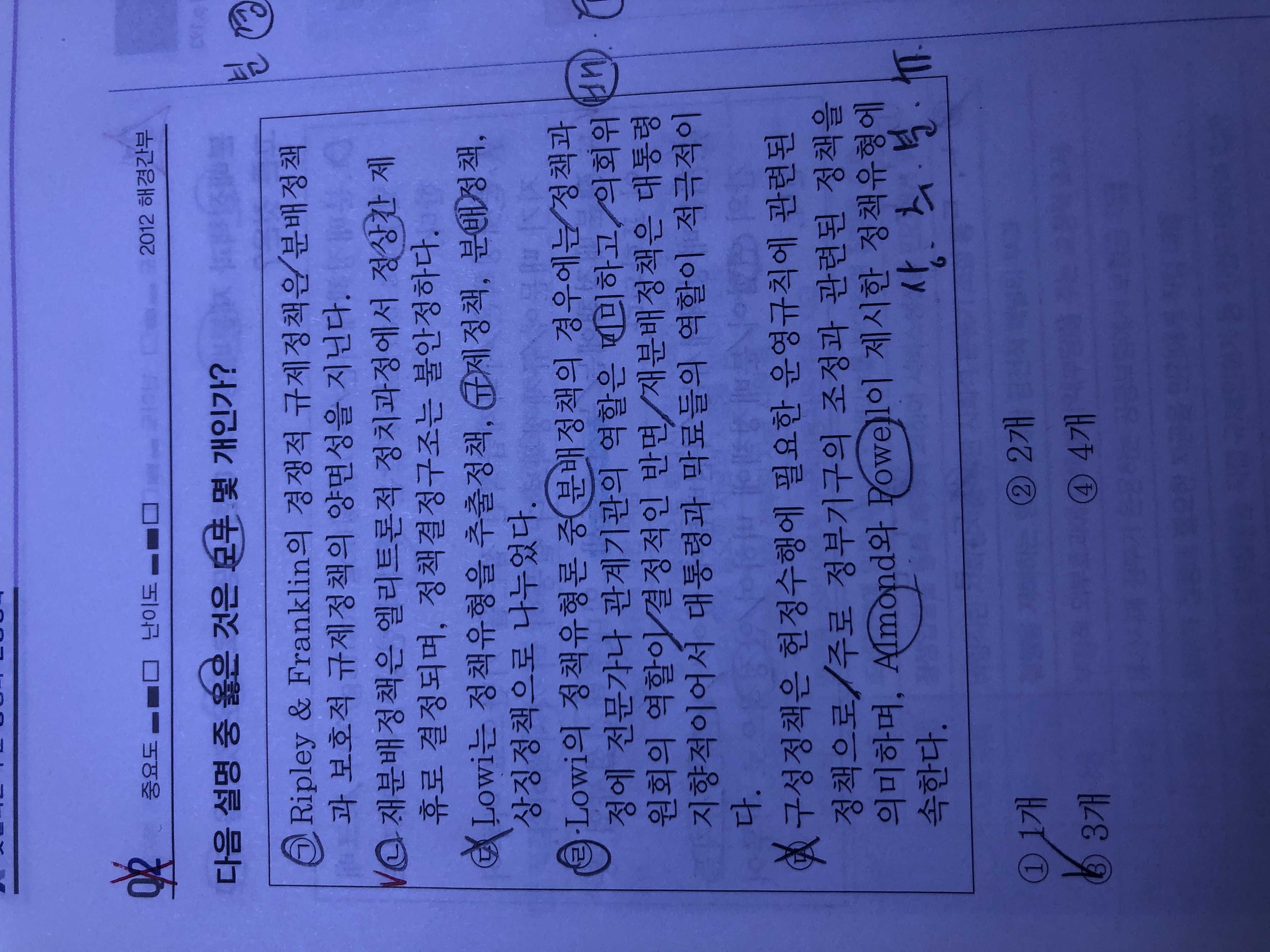 안녕하세요. 선택지 ㄴ) 재분배정책은 제로섬게임이 일어난다고 하여 정책결정구조가 불안정하다고 생각하였는데요? 해설에서는 정책결정구조가 안정적이라고 하니 이유가 궁금합니다.