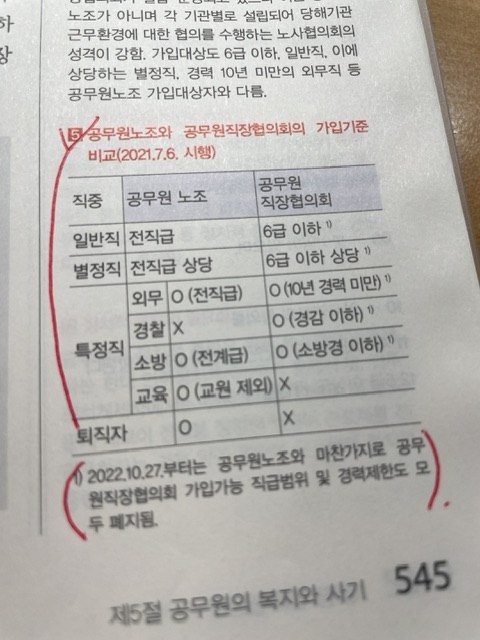 안녕하세요 공무원 직장협의회에서 주석에 2022.10.27부터 가입 직급범위 및 경력제한이 모두 폐지된다고 적혀있는데 정오표에는 없더라고요 어떻게 공부하면 될까요?