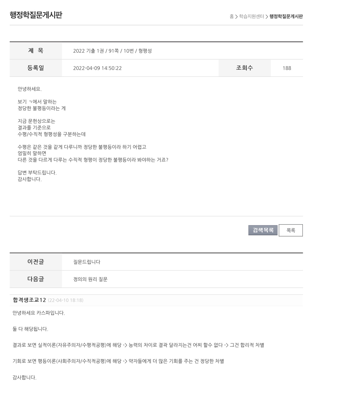 검색하다 의문생겨ㅜ질문드립니다ㅜ 1. 위 답변에서 실적이론응 수평적 공평이라고 하셨는데 결과기준으로 하면 수직적 공평 아닌가요? 2. 최근 형평성에 대해 결과기준으로 실적이론-수직적 공평으로 보지만 실적이론-기회의평등 기회의평등-수평적공평 으로 보는 건 맞는거죠?