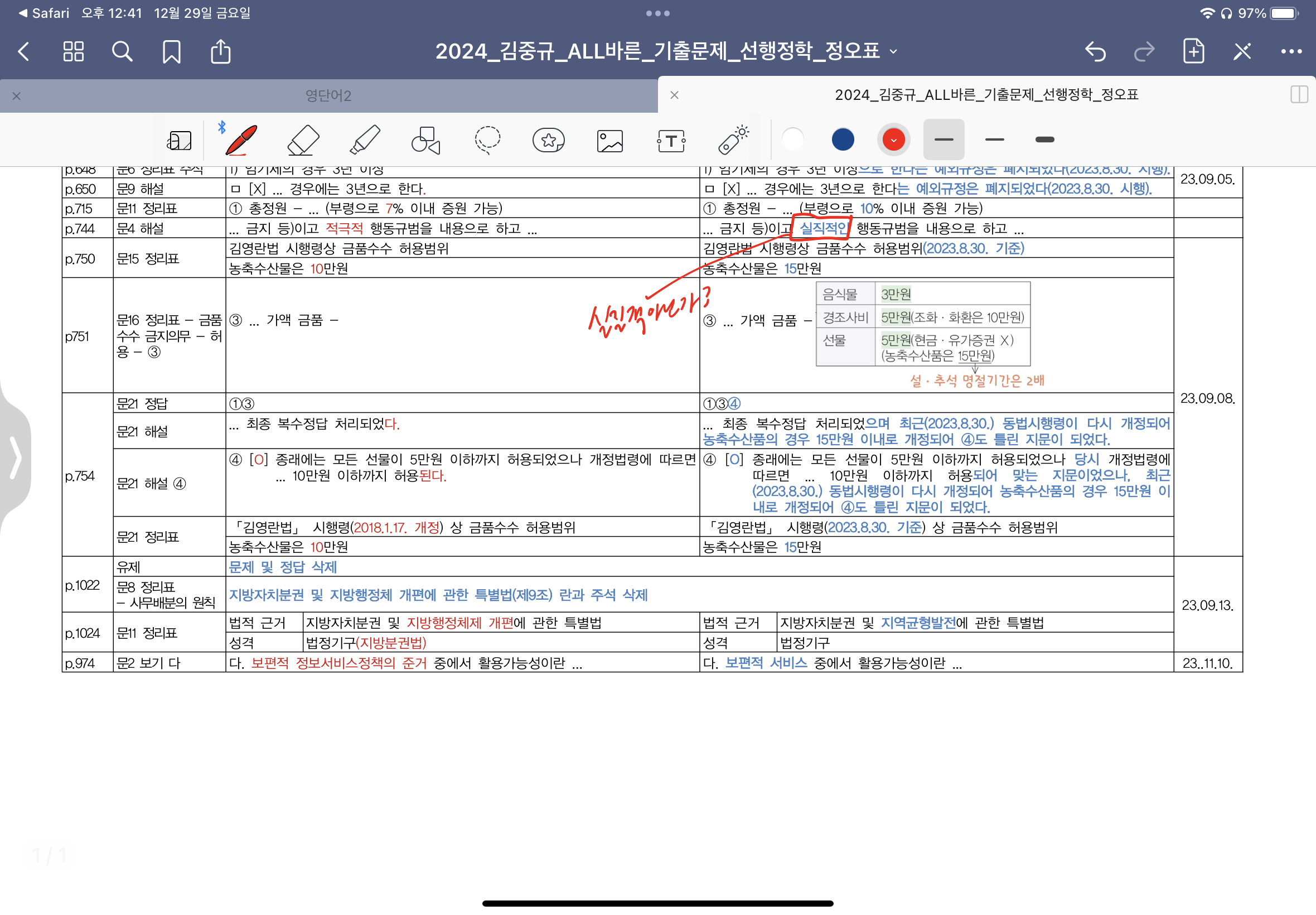 p.744 4번 정오표에 보면 적극적 행동규범을 실직적으로 고쳐야 한다고 되어있는데 실질적이 아닌가요? 실직적이 맞다면 그 이유도 궁금합니다! 또한, 김영란법 (2023.8.30.기준)에서 농축수산물은 선물의 경우 10만원에서 15만원까지로 가능해진게 맞는지 여쭤봅니다!