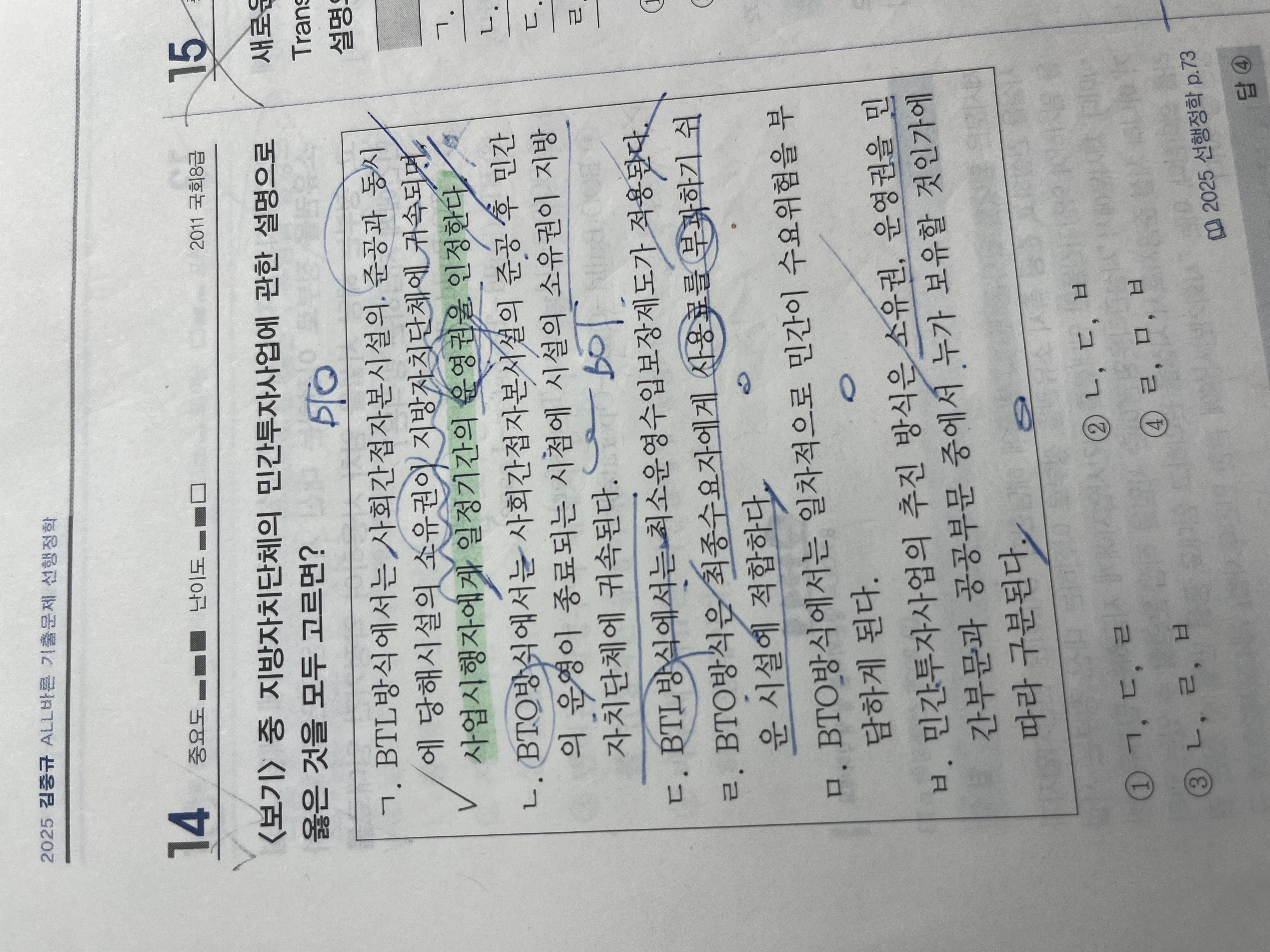 2025 기출 선행정학 92p BTL 은 준공과 동시에 소유권이 지자체에 귀속되며 민간이 운영권을 획득하고 이를 바탕으로 정부가 임대운영하는 방식이라고 알고 있는데 위 사진의 선지 1번에서 "사업시행자에게 일정기간의 운영권을 인정한다"는 표현은 엄밀히 따지자면 BTO , BLT 두 방식 모두 사용할 수 있는 표현인건가요?